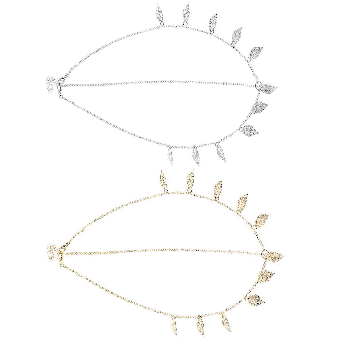 Fancy Headband For Women Special Event Gold Color Alloy Head Chain 2Pcs