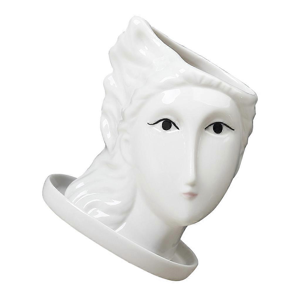Succulent Planter Human Head Shape Creative Design For Home Decoration White 9X7CM Ceramics 1Pcs