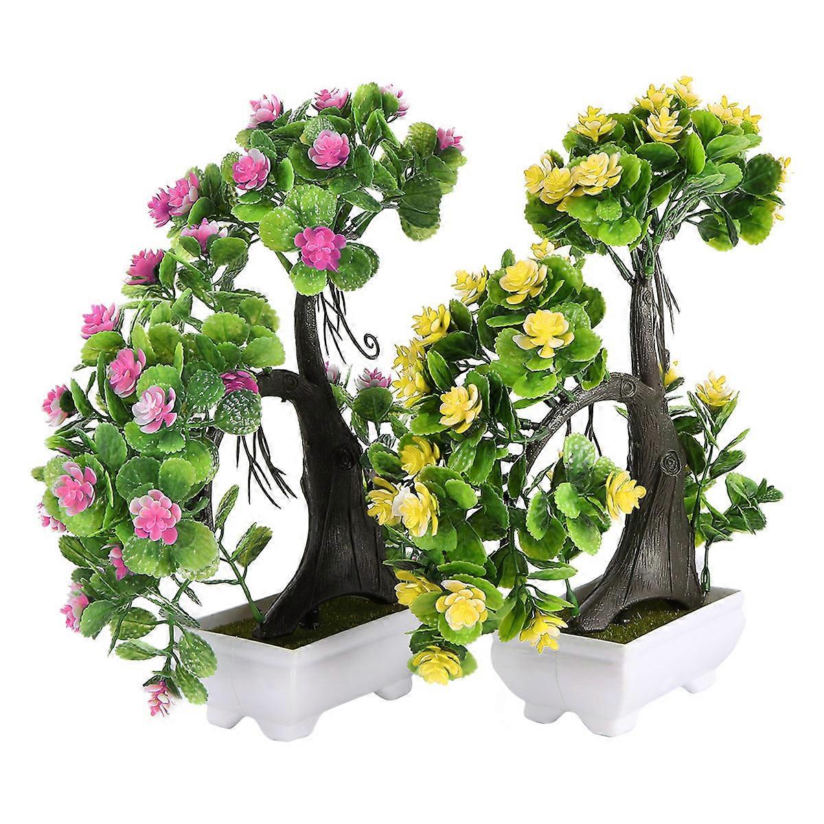 Potted Plant 2Pcs Assorted Color Simulation Flower with Eye-Fatigue Relief for Decoration Use