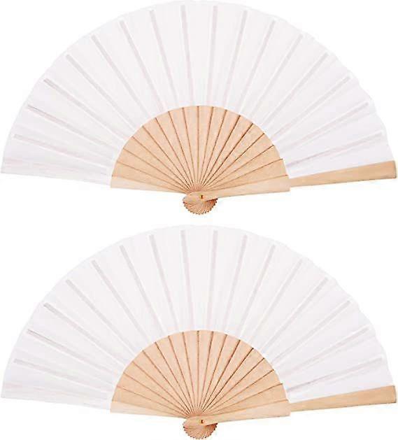 Chuangdi 2 Pieces Wooden Fan Fabric Hand Folding Fans Handheld Fans Craft Fan Decoration Fan Gift Fan with Drawstring Organza Bags for Men Women Girls
