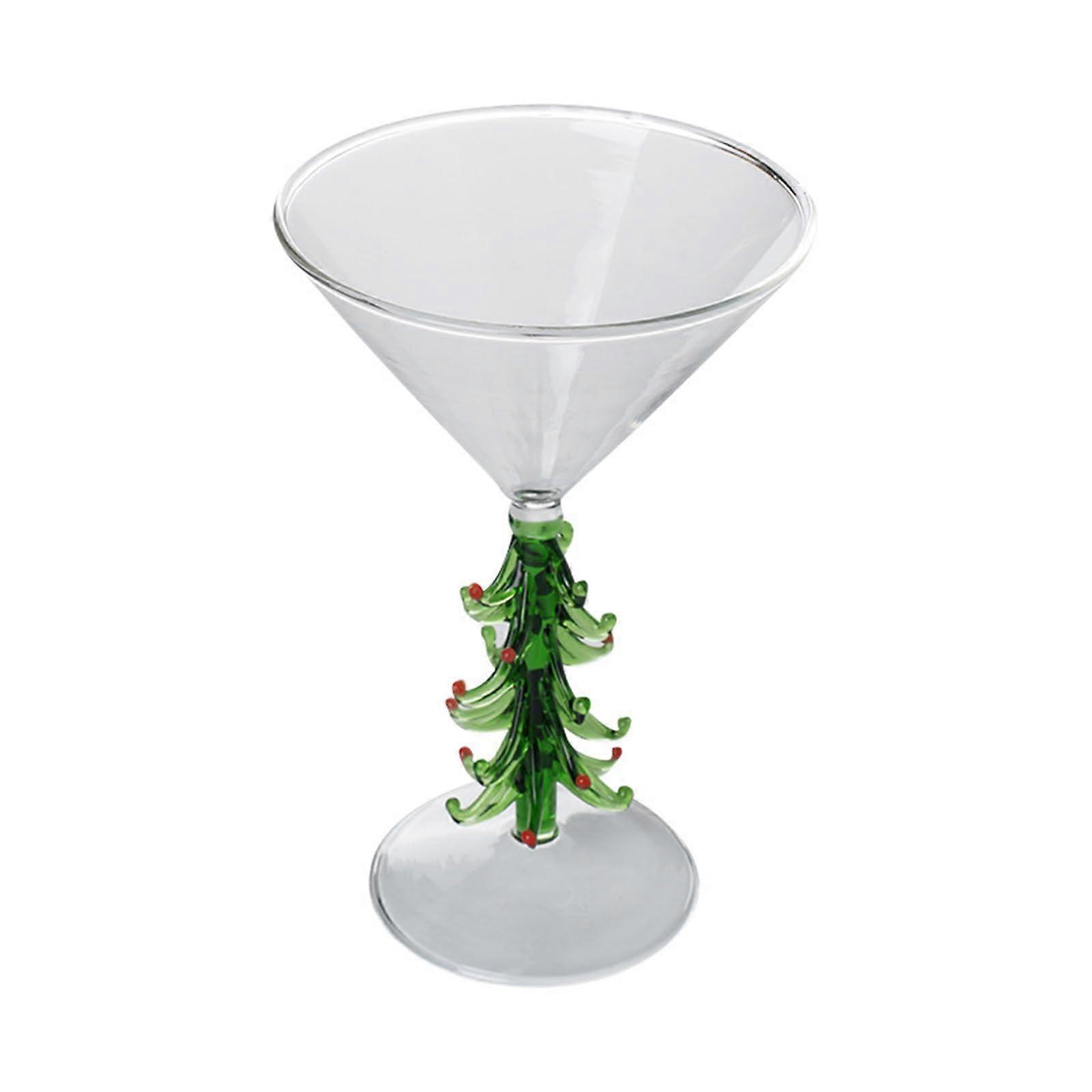 Elegant Christmas Tree Shaped Wine Glass for Drinks, Cocktails, Green Glassware, Holiday Drinkware