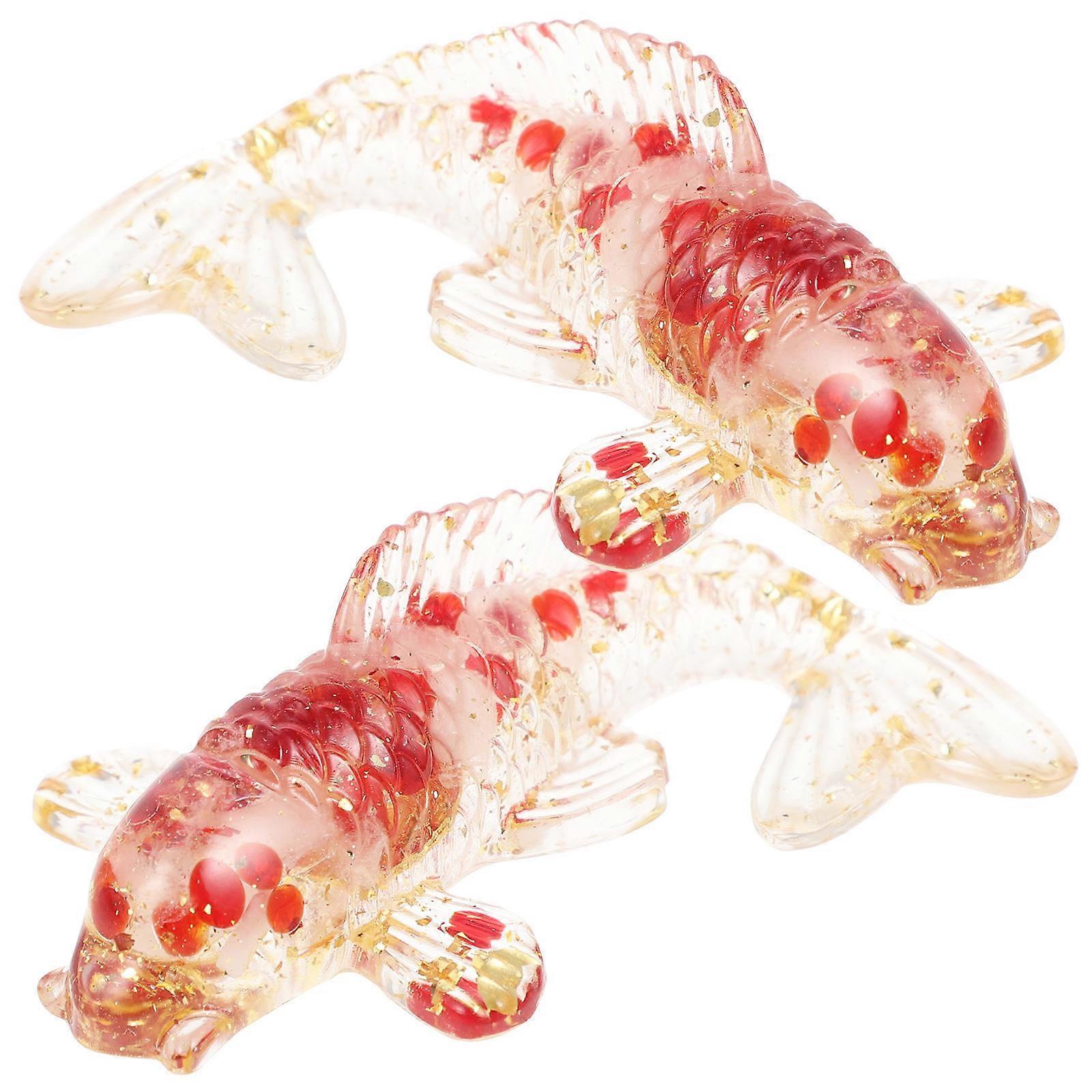 Red Crystal Fish Figure for Desk Decoration 2Pcs Compact Statues