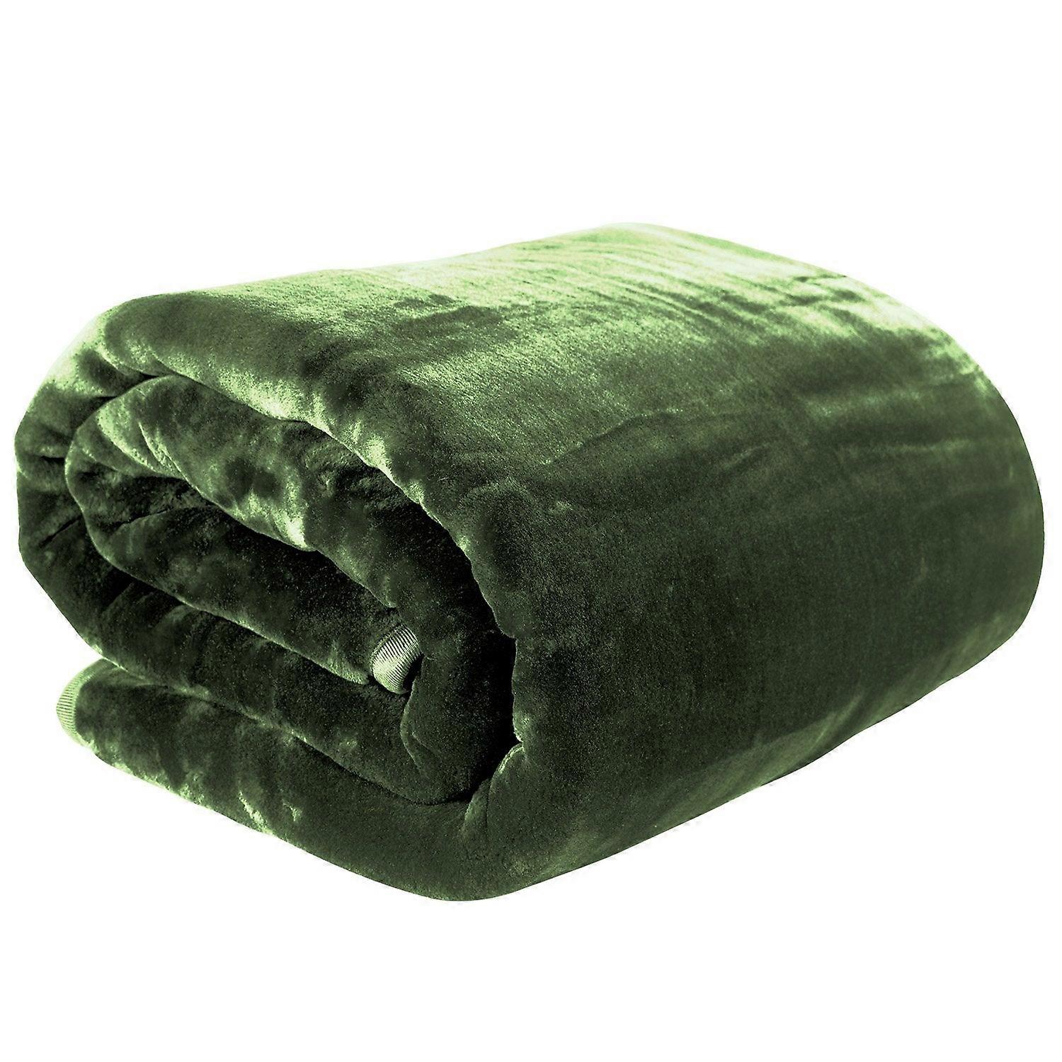 Laura Hill Faux Mink Blanket Queen Size Double Sided Throw Rug Green Blankets
