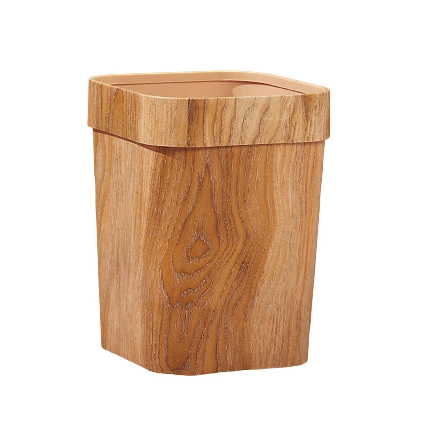 Household Wood Grain Rubbish Bin Reusable Waste Paper Bin For Kitchen And Living Room Compact Size Wood Grain Finish