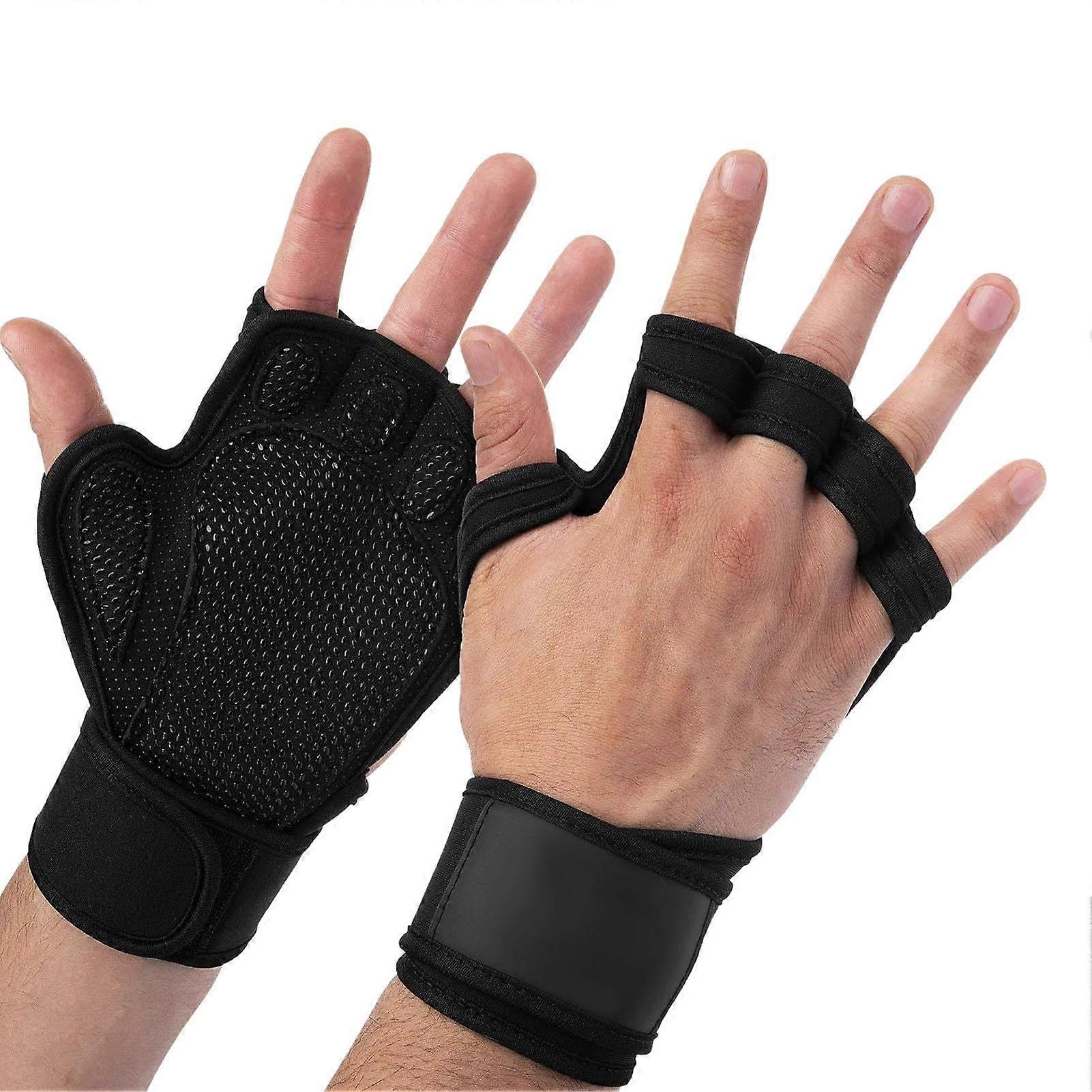 Weight Lifting Gloves with Wrist Support Fingerless Design Ventilated Fitness Gloves for Men and Women Black XL