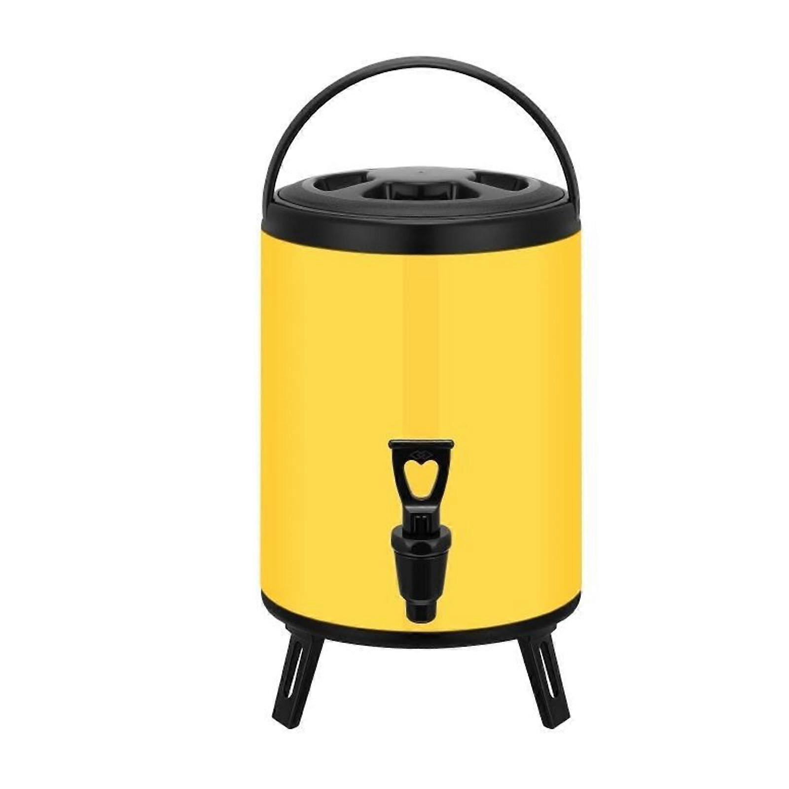 Insulated Stainless Steel Container Hot Water Urn With Tap, Double-Wall Dispenser, Foldable Stand, Yellow, 30x16 Cm, 6 L