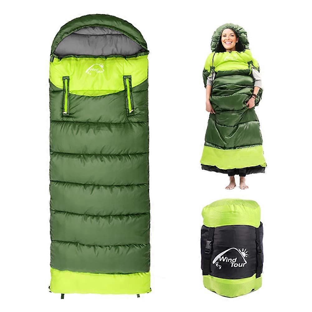 Mummy Sleeping Bag For Adults And Children, 4 Seasons Backpacking Bag, 1950 g, Warm And Washable, Green