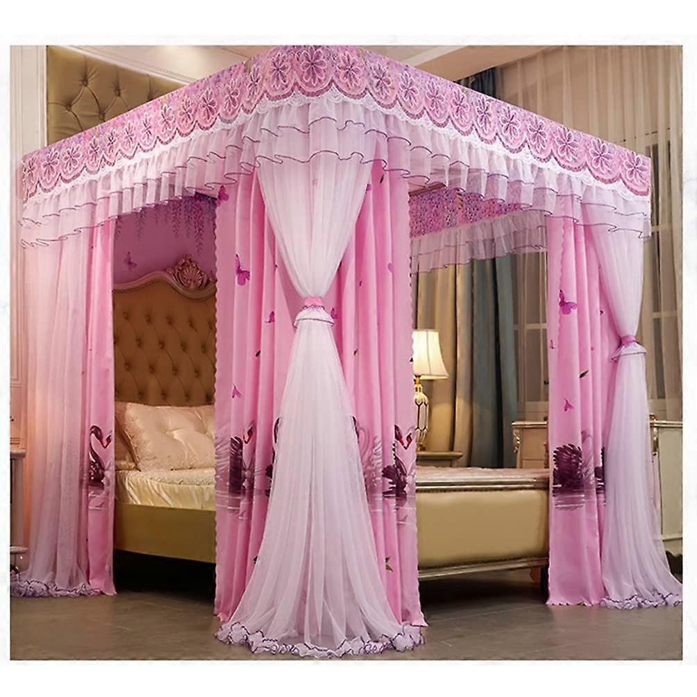Bettvorhang Queen King European Palace Embroidery Bed Curtain 180X200X200 CM Pink-B Romantic Bedroom Decor