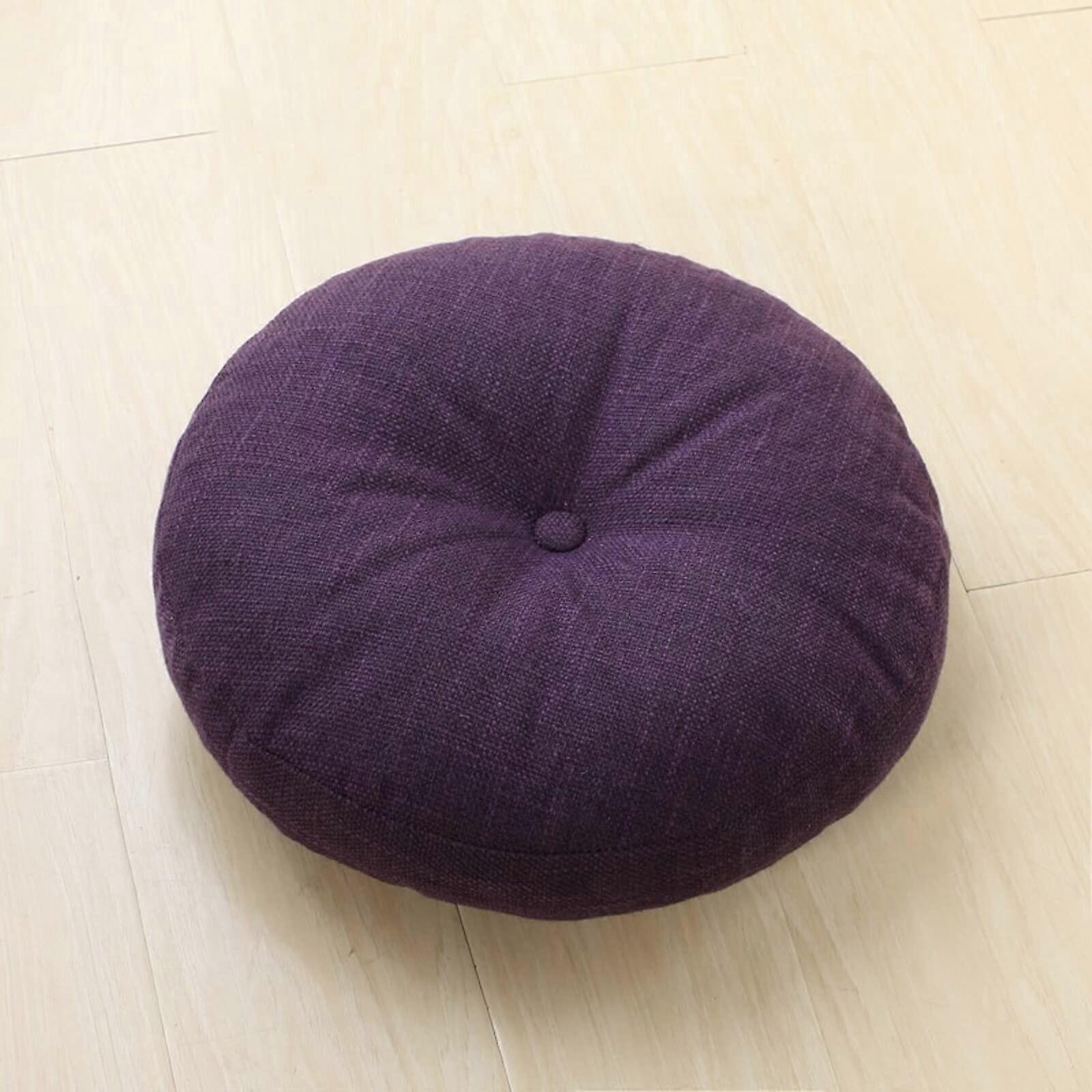 Round Cotton Linen Yoga Seat Cushion 50 cm, Soft Cord Meditation Pillow, Washable Breathable Purple Cushion for Living Room Decor