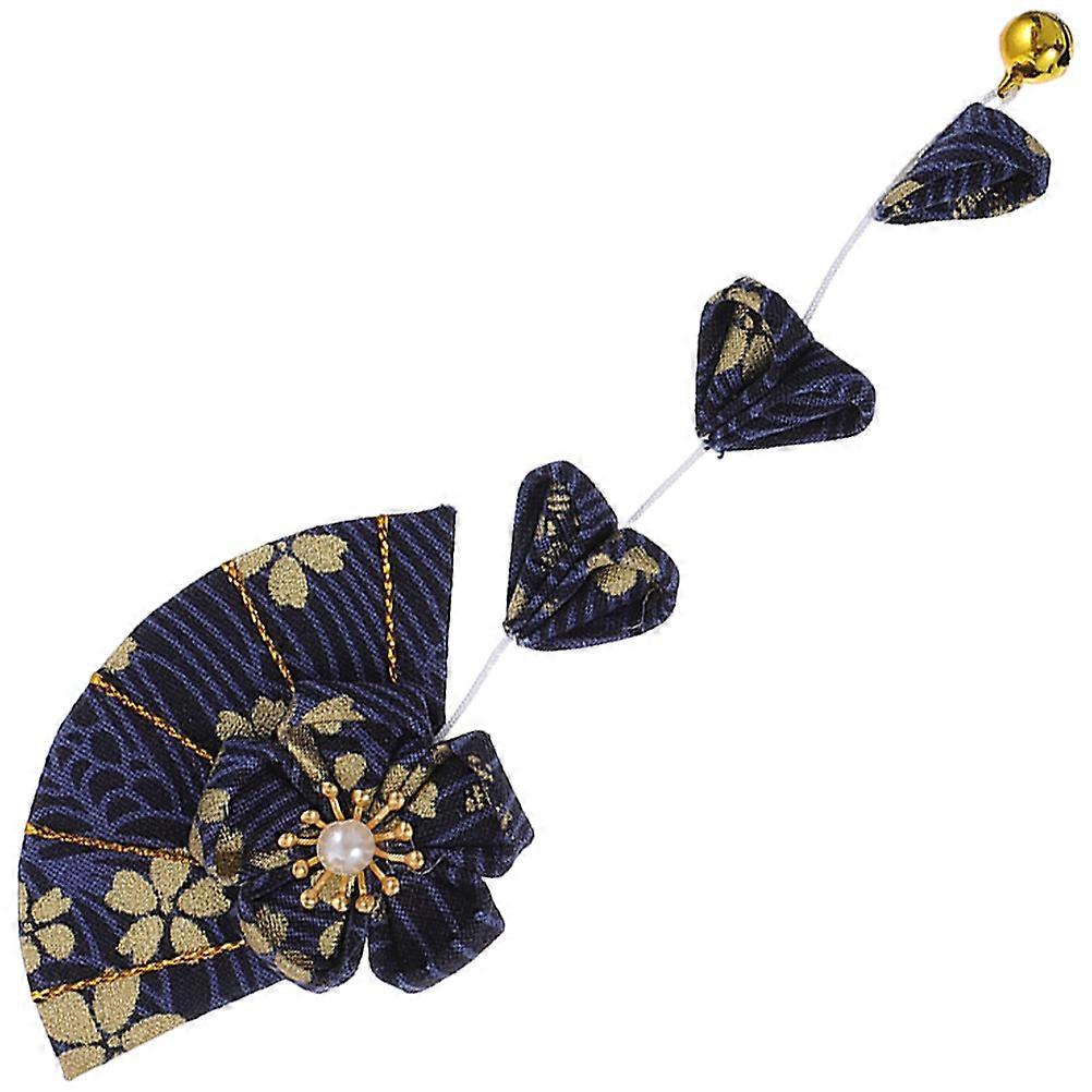 Japanese Hair Accessories Blue Fan Hairpin Cloth Metal Vintage Tassels Bells for Decoration