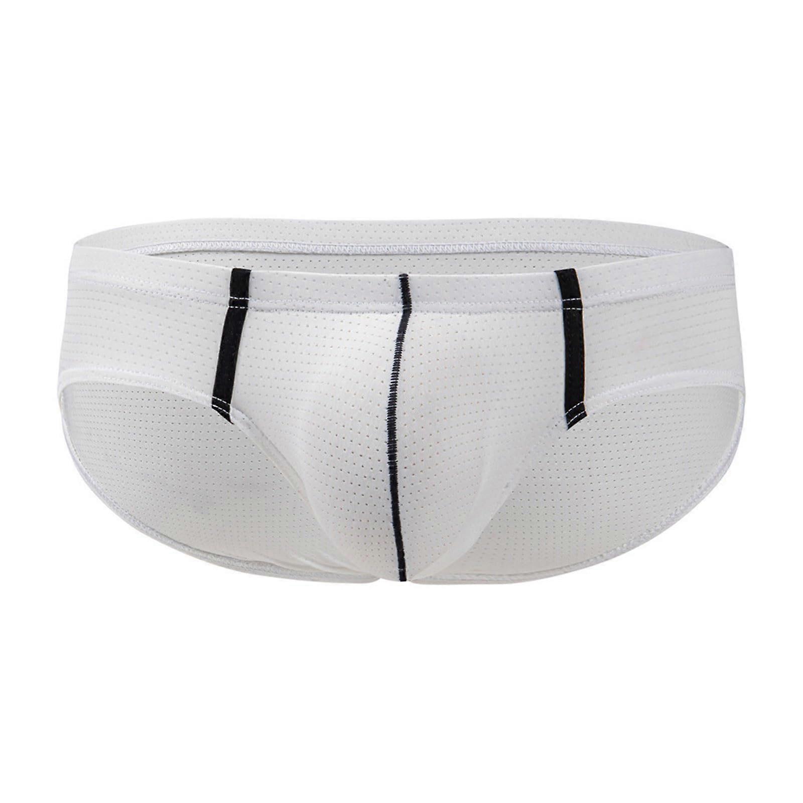 Men's Mesh Briefs White XXL - Breathable Mesh Underwear For Men, Soft Stretch Bulge Pouch, Sports Retro Style