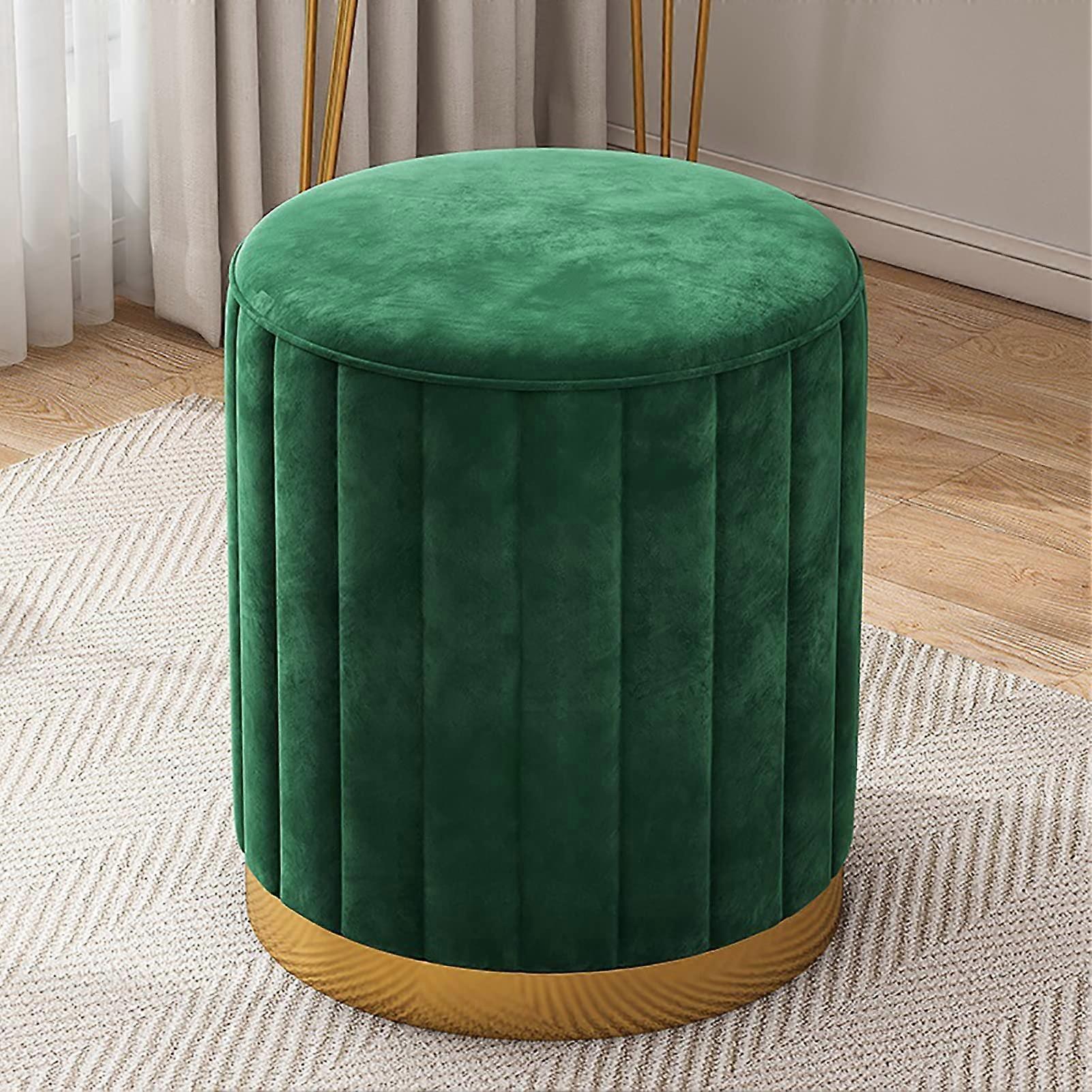 Round Velvet Ottoman with Footrest – Beige Upholstered Footstool for Living Room and Bedroom – Modern Small Ottoman Available in Green