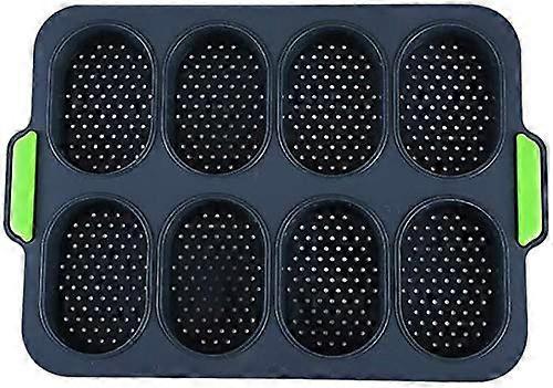 Bread Baking Mould for 8 Rolls, Silicone Non-Stick Baguette Tray, Black Green Silicone Baking Tray with Crispy Crusts