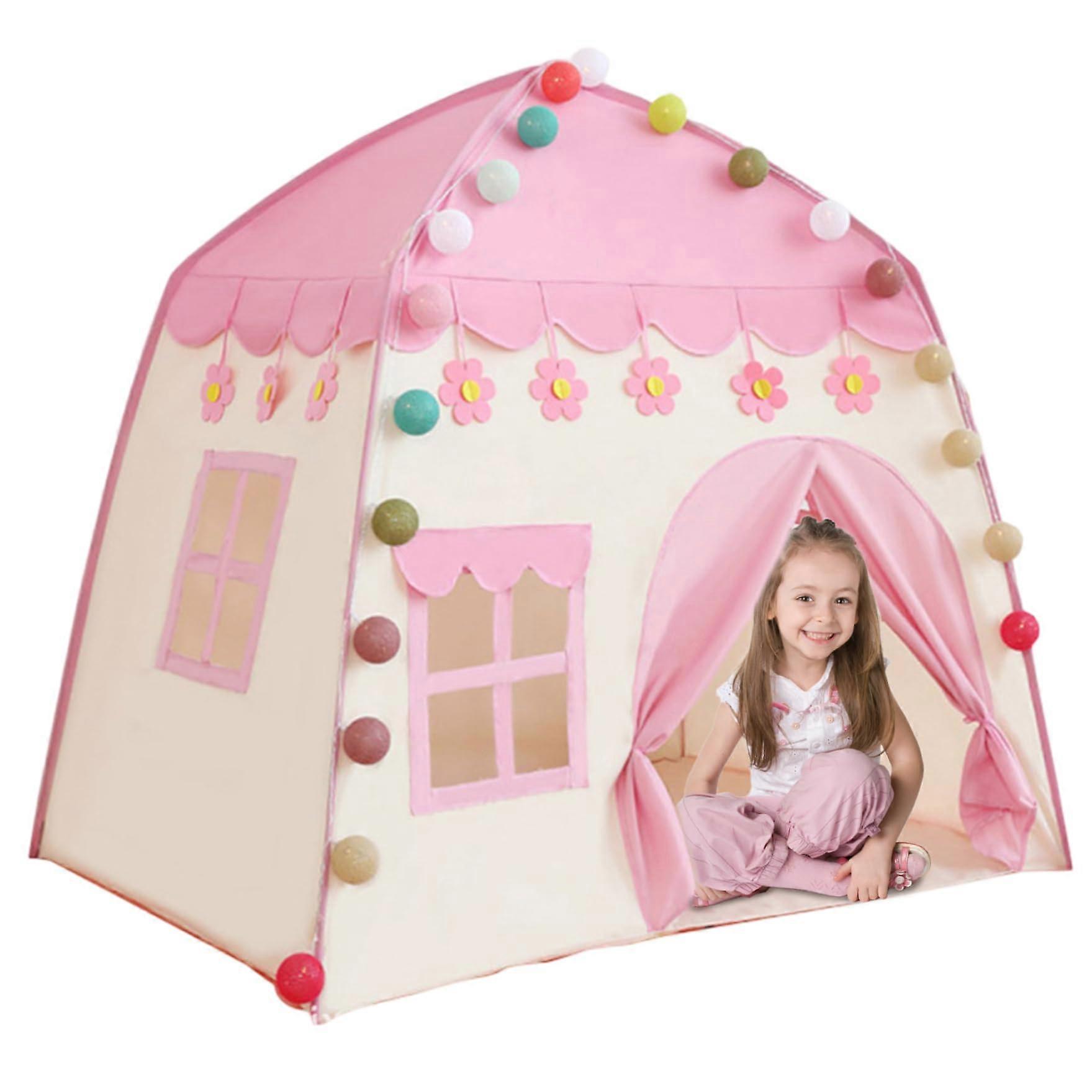 Kids Tent Princess Tent 51x39x51 Inches, Oxford Fabric with Door Curtain and Window for 3-4 Kids, Ventilated with Ball Light
