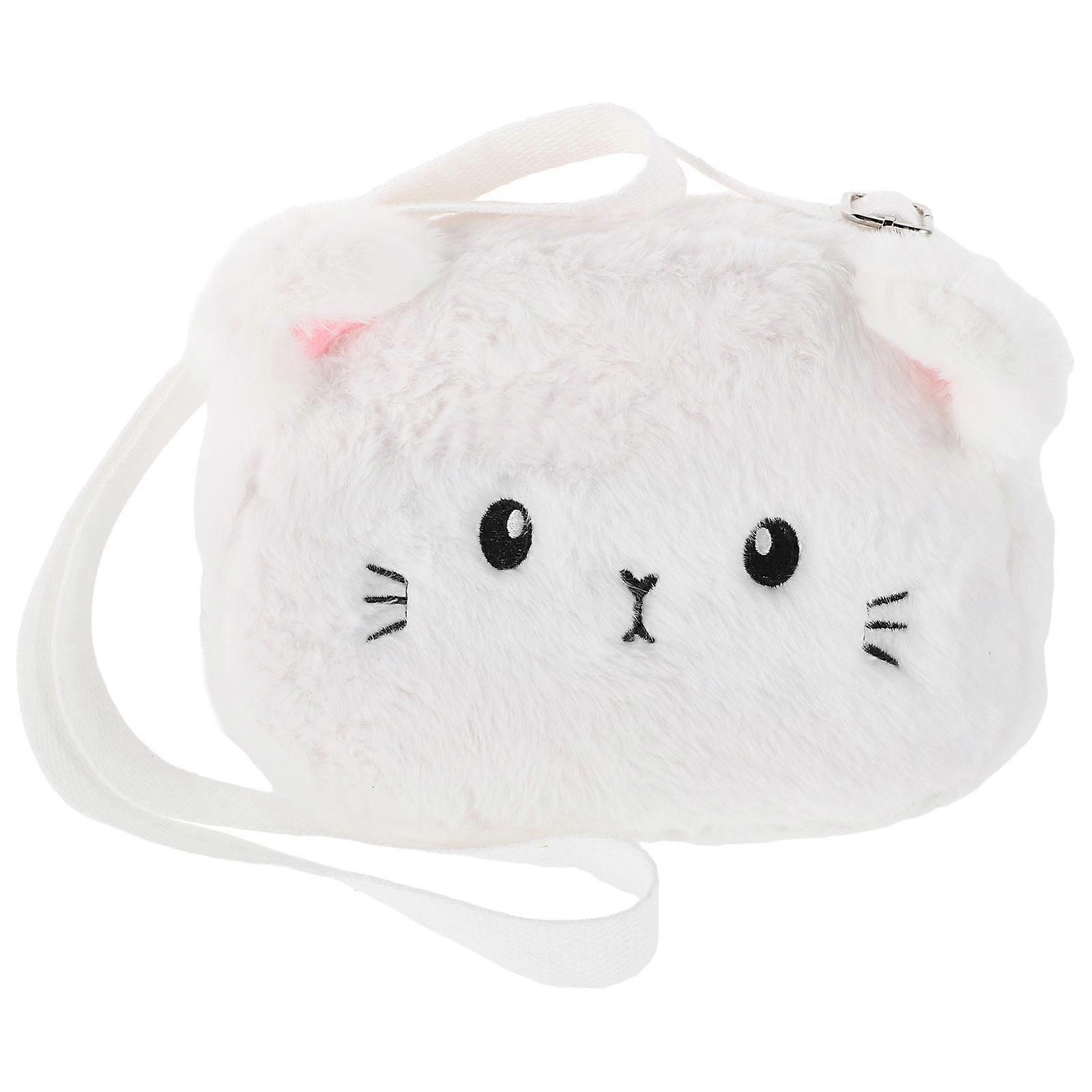 Cute Cat Crossbody Bag White Plush Pet-Like Comfort for Storage Use Girls Crossbody Bag