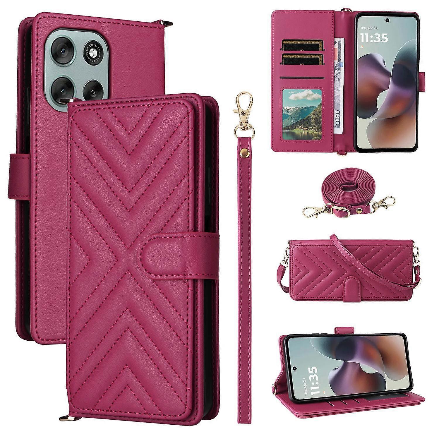 For Motorola Moto G56 5G Case with Shoulder Wrist Strap Leather Phone Cover Stand Wallet
