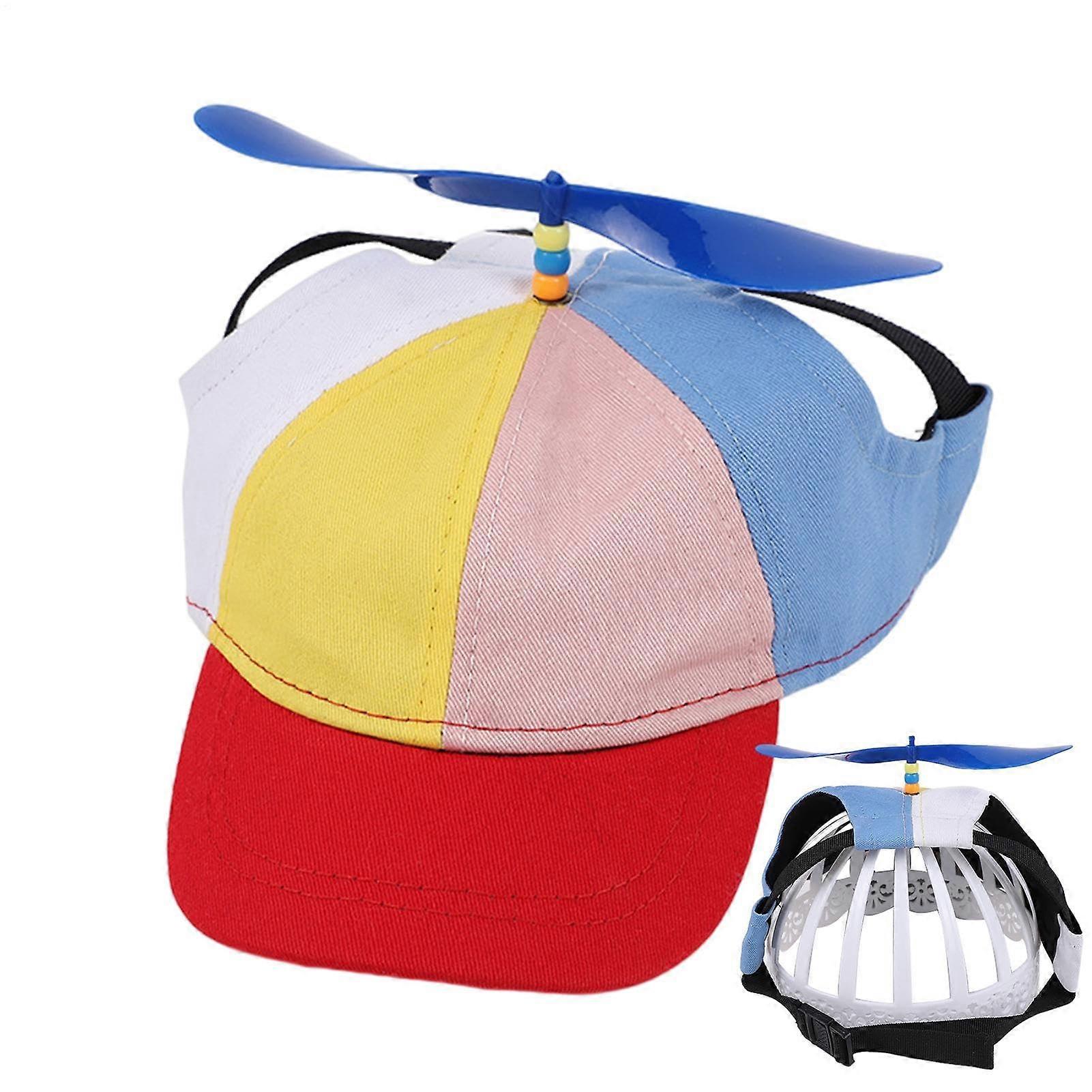 Hundehut - Multifunctional Pet Costume for Small Dogs and Cats, Colorful Outdoor Sun Hat with Ear Holes, Rainbow Helicopter Design