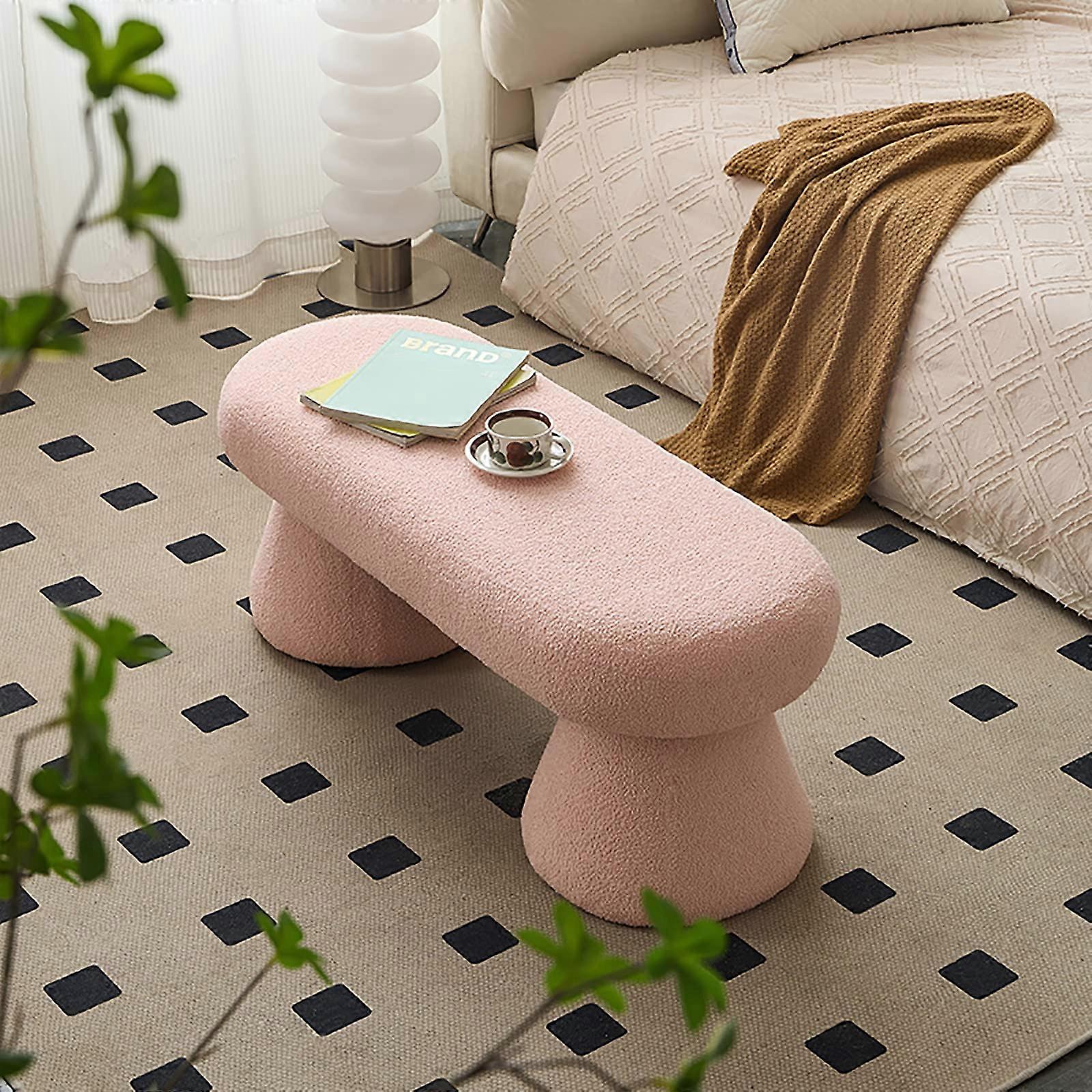 Fuzzy Sherpa Ottoman Bench Rectangular Boucle Upholstered 100x40x43 CM Rose For Bedroom Living Room Hallway