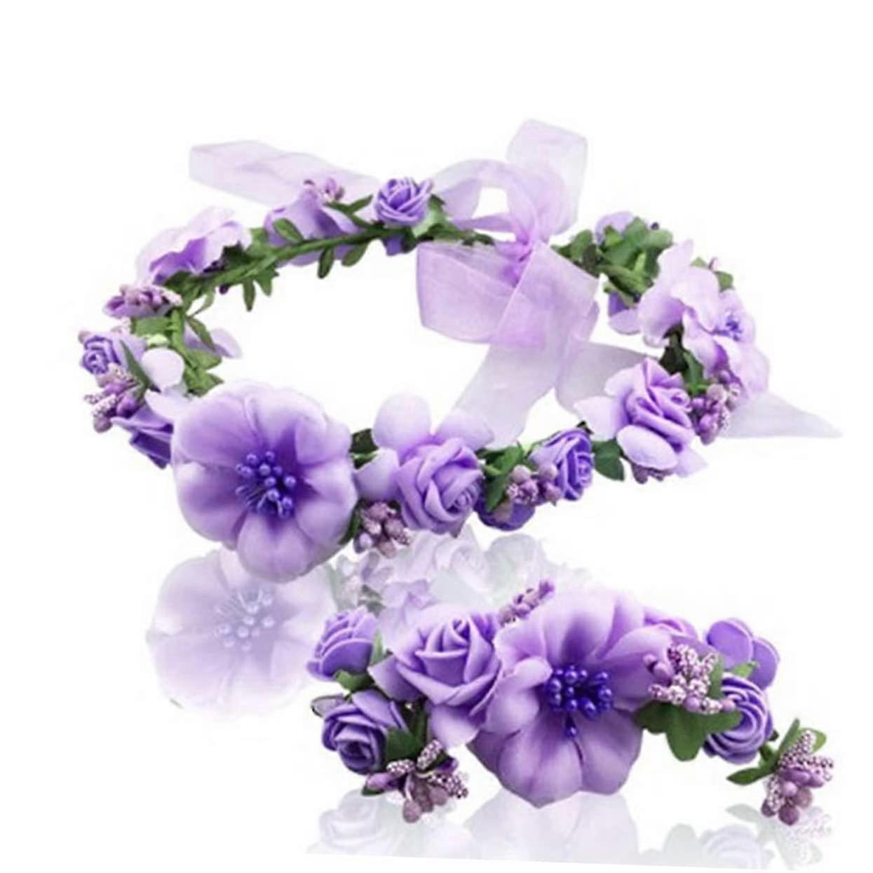Floral Headband for Girls - Wedding Flower Crown Hair Accessory for Bride and Bridesmaid - Festival Decorative Garland