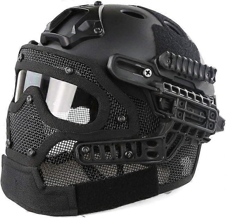 Airsoft Tactical Helmet Full-Face Mask Goggles Black For Outdoor Sports Paintball CS Game