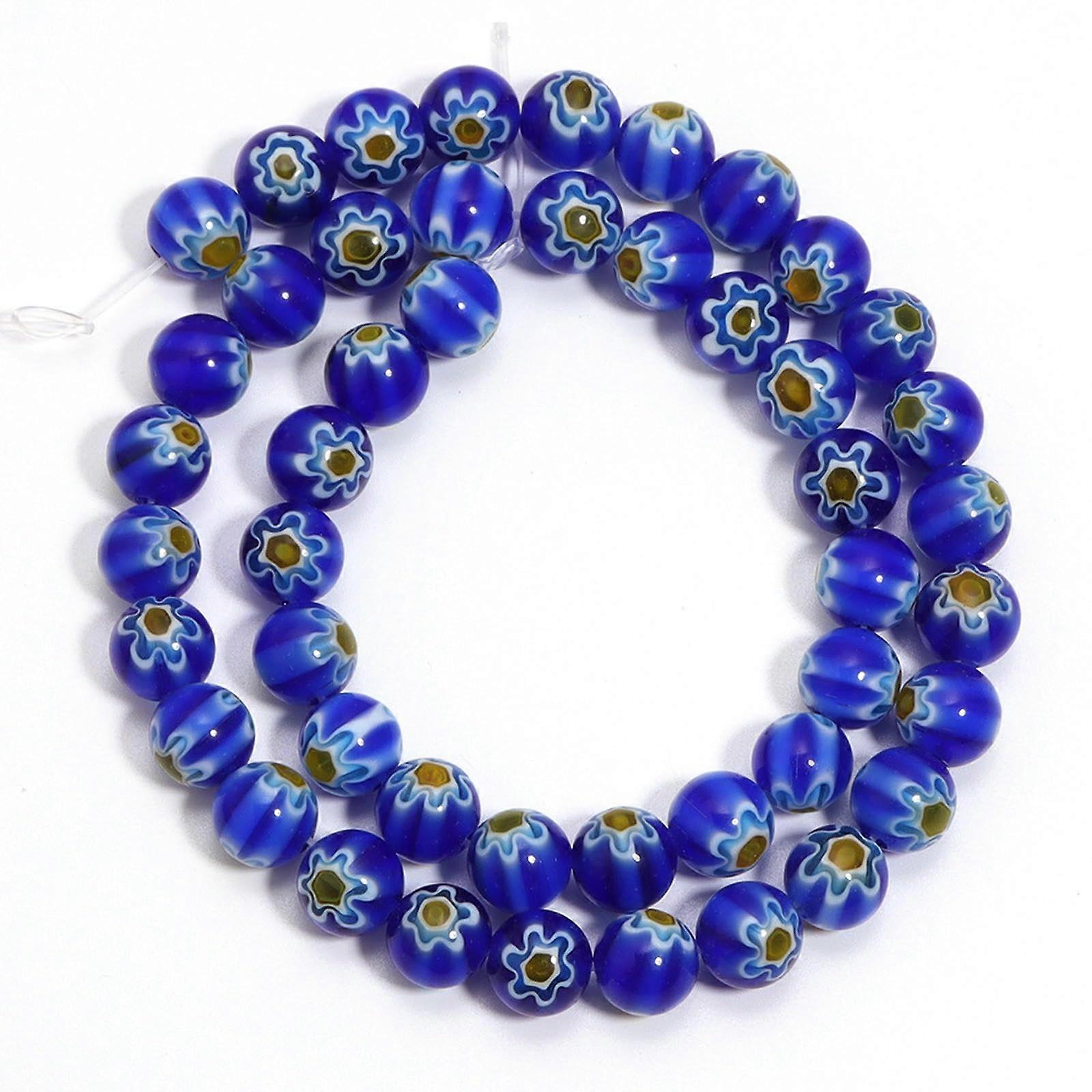 Patterned Glass Beads Blue Yellow Flower Pattern, 6mm Diameter, 35cm Strand, ~55pcs, Handmade DIY Bracelet Beads