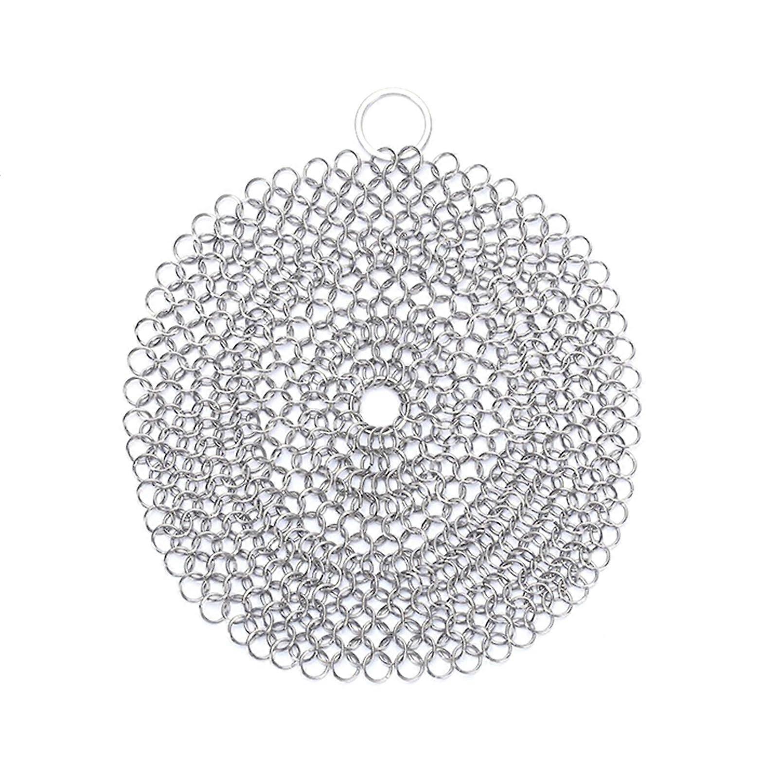 Stainless Steel Chain Scrubber for Pots Pans and Grills Rust Removal 7in Round Kitchen Cleaning Tool