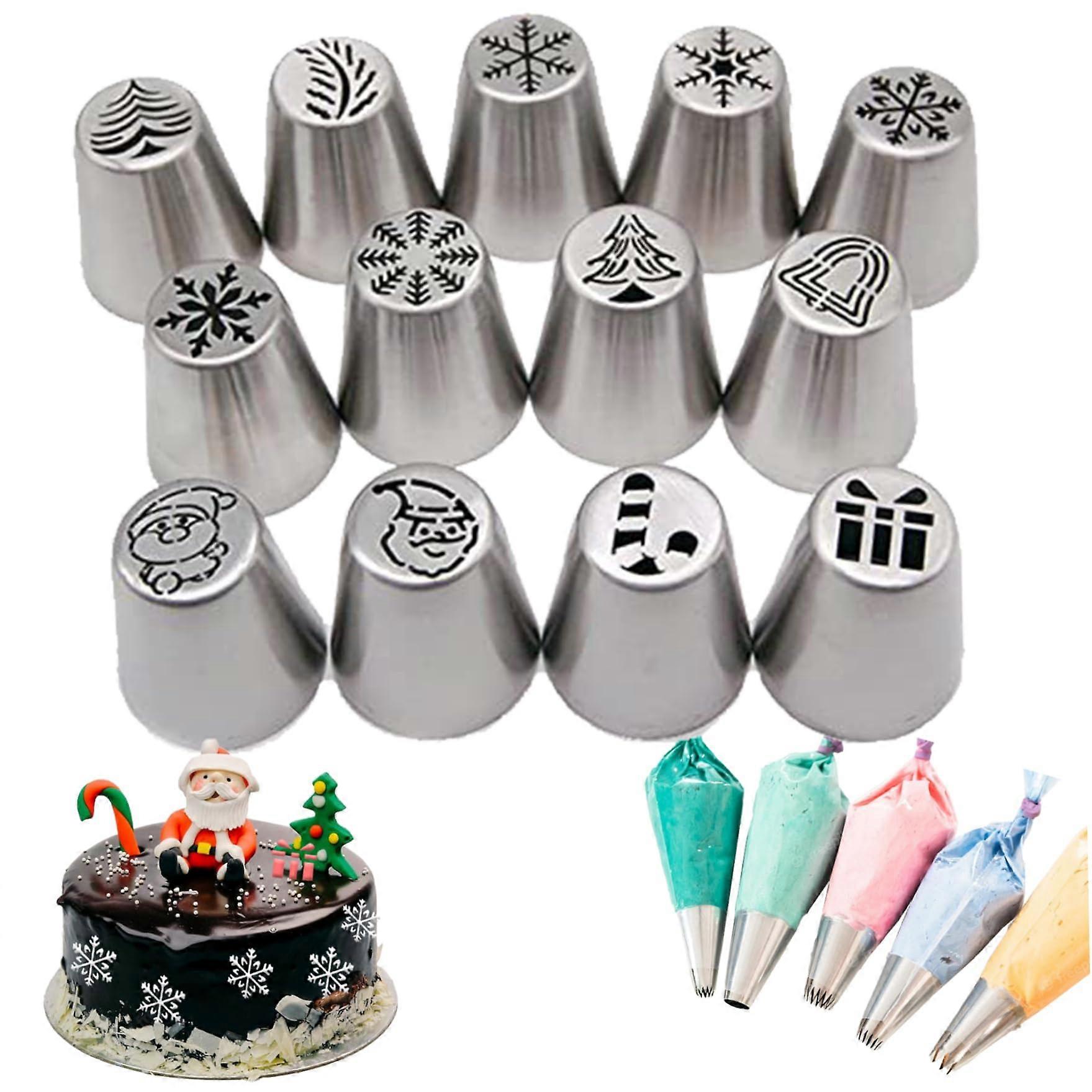 Rohrleitungsspitzen Set 13pcs Edelstahl Weihnachtskuchen Dekoration Frosting Düsen mit Weihnachtsmann Schneeflocken Weihnachtsbaum