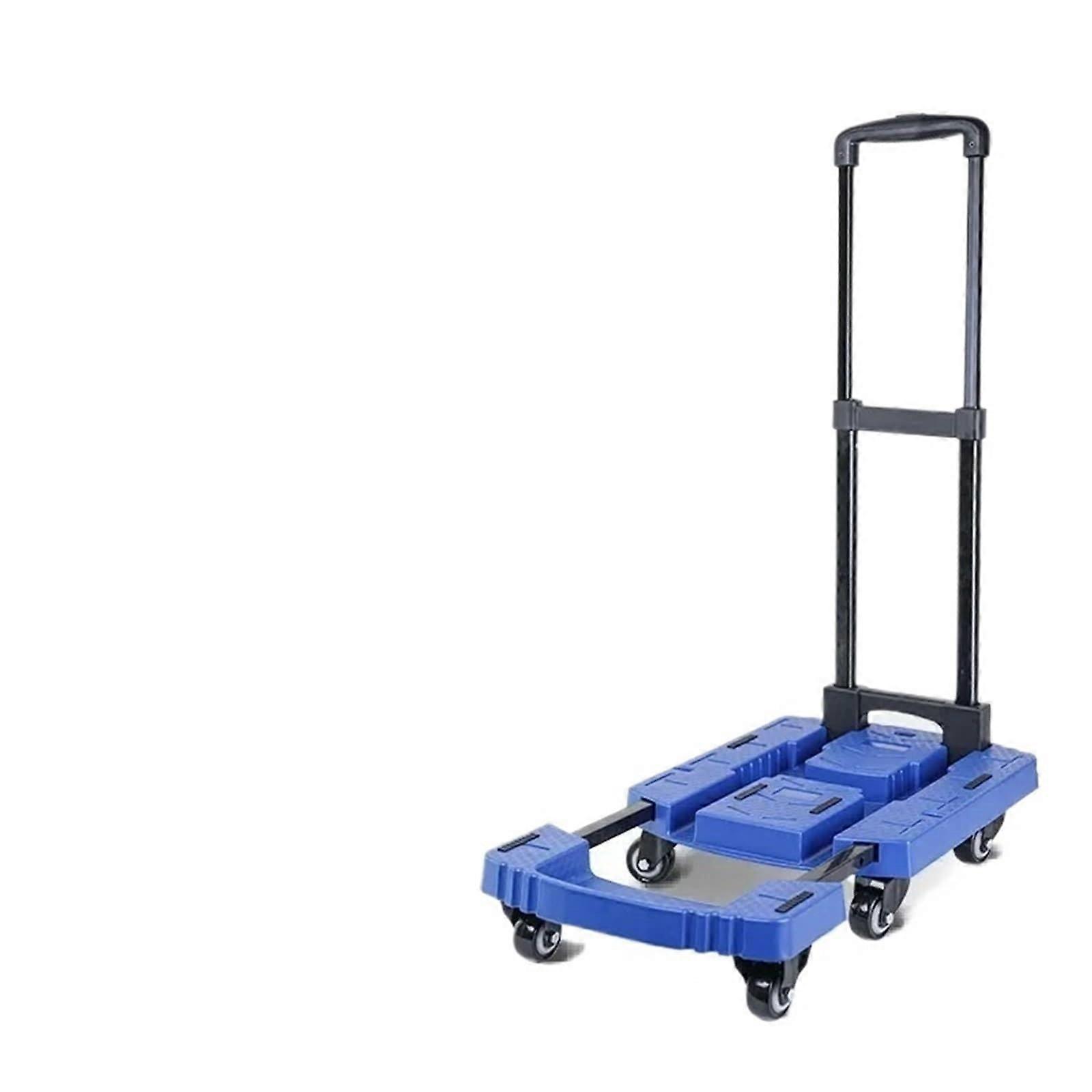 Folding Hand Trolley with Six Wheels, Portable Flatbed Transport Trolley, Retractable Cargo Cart, Noiseless Material Handling Tool in Blue
