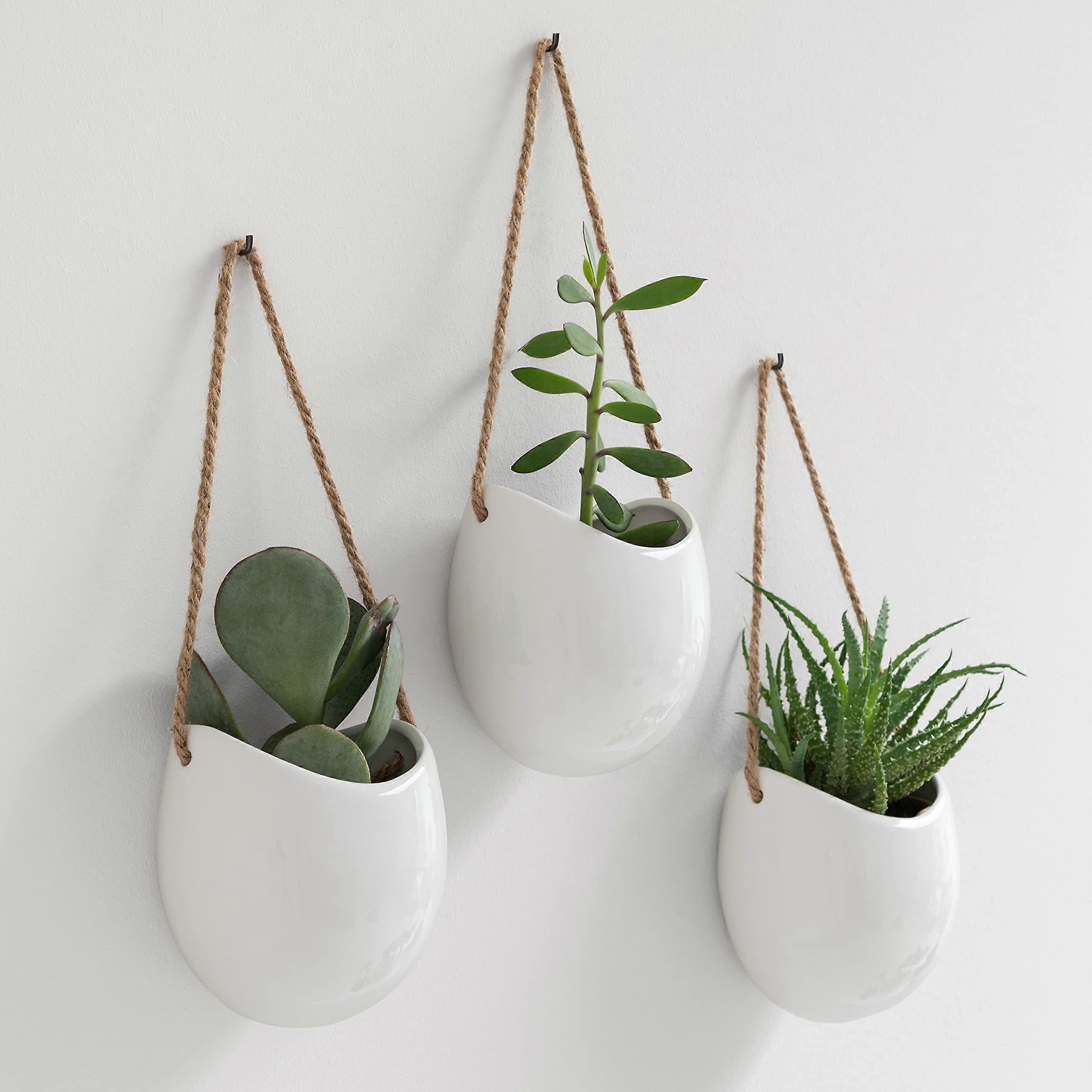 3PCS Ceramic Hanging Flower Pots | Wall Decoration for Interior, Balcony | white)