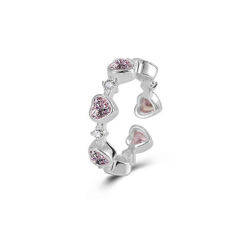 Meilės širdelės rožinis deimantinis žiedas, madingas, reguliuojamas atidarymo žiedas, pora žiedai, gimtadienio dovana,sidabrinis