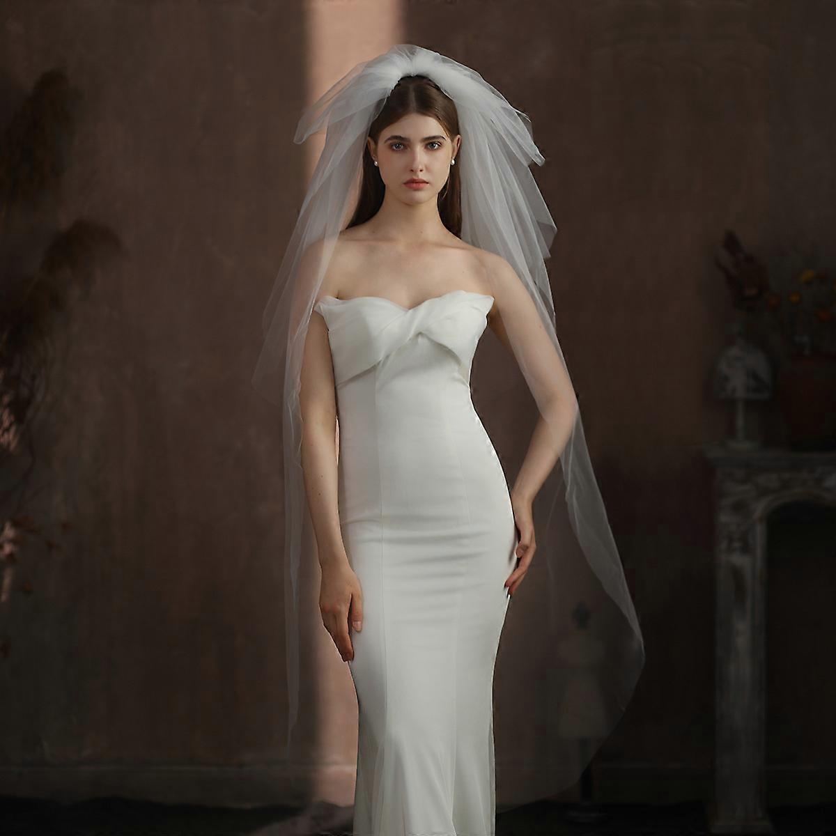 Ilgas šydas, daugiasluoksnis, baltas, paprastas tiulis, vestuvės, nuotakos galvos apdangalas, 150x160 cm