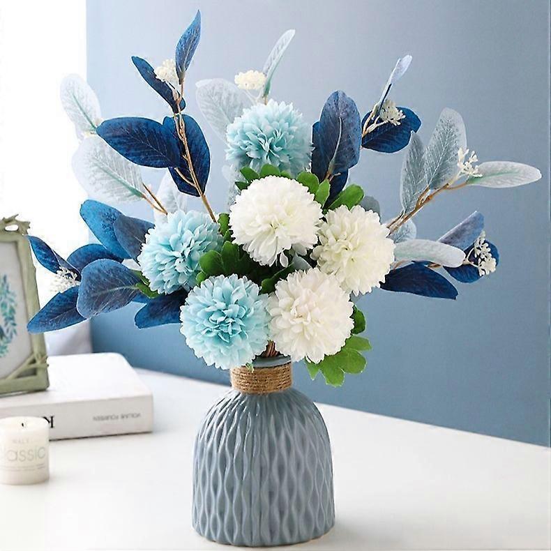 Blue imitation eucalyptus decorative flowers, living room decorations, table decorations, ornaments, with vases