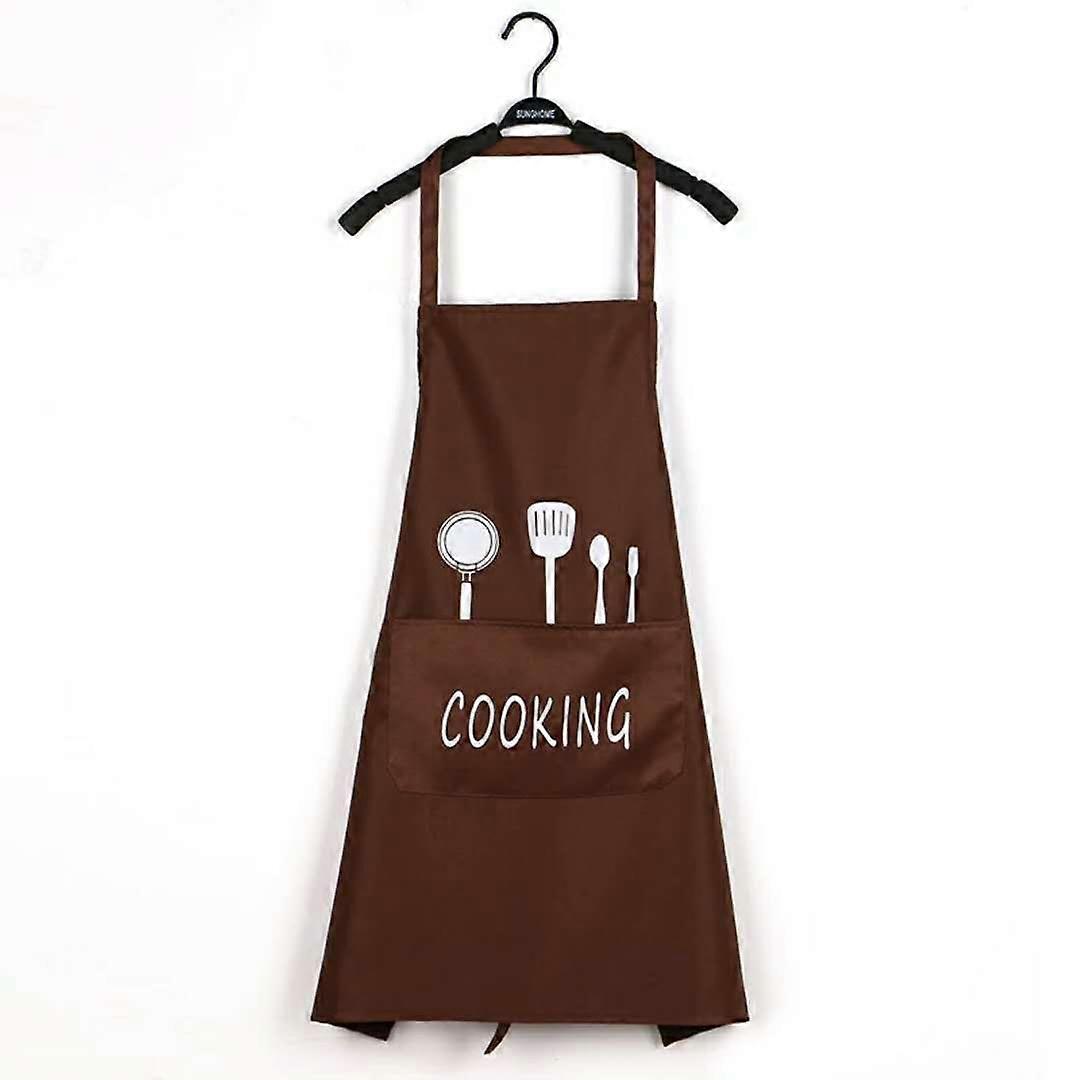 Kitchen Apron Cooking Apron Ladies Men Adult Waterproof Oil With Pockets Home, Gardening, Dining, BBQ, Restaurant (Coffee) 1 Piece
