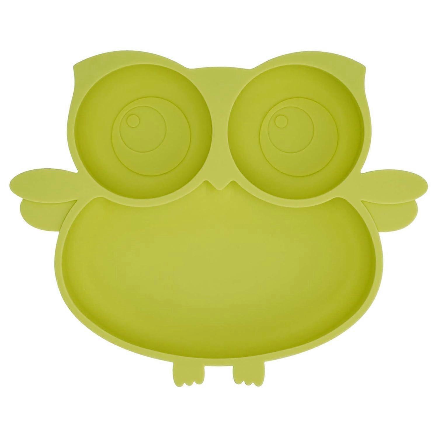 Children's Silicone Dinner Plate Owl Dinner Plate Baby Eating Training Plate Divided Plate (green)