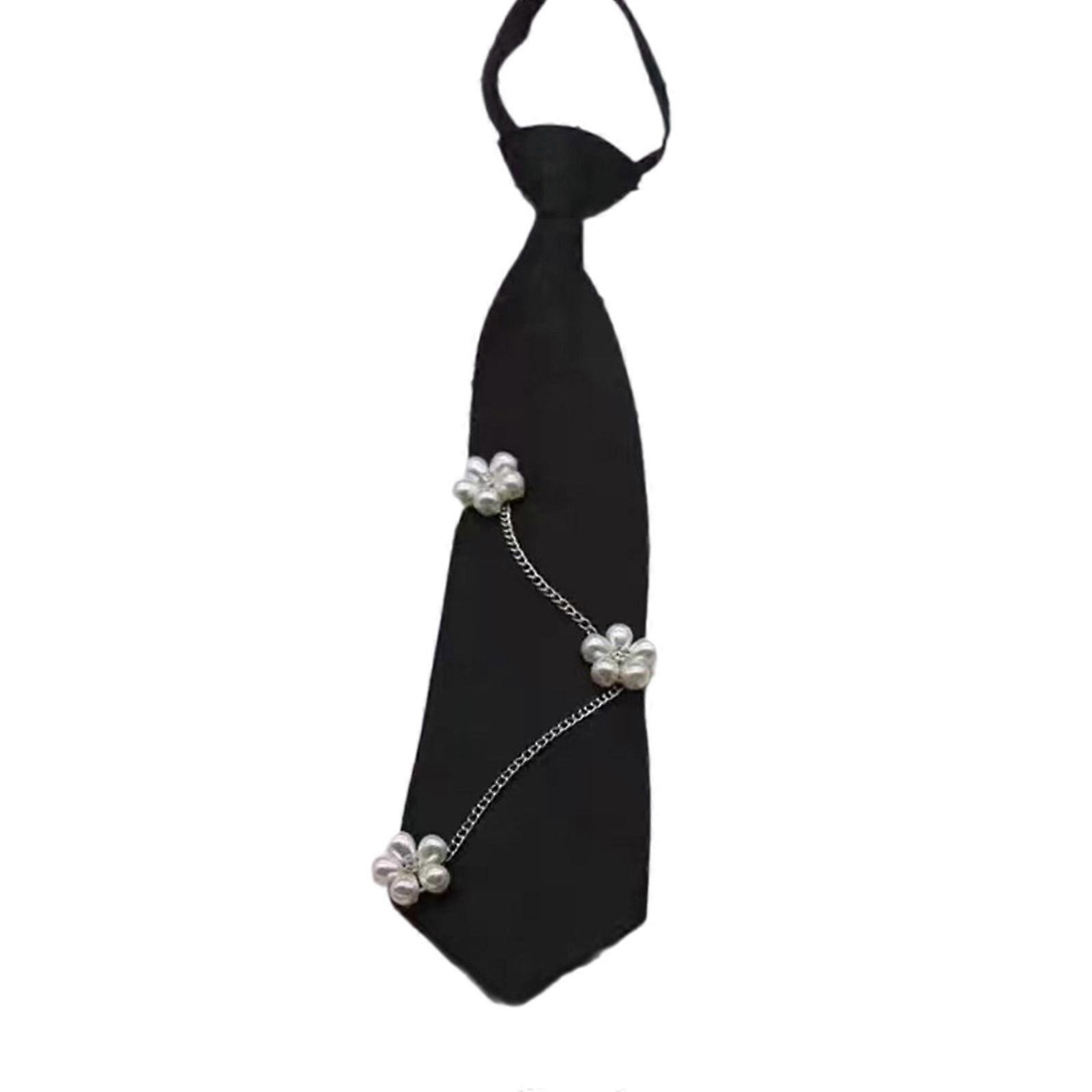 Punk Style Necktie with Metal Chain Fashionable Adjustable Pre-Tied JK Shirt Decoration Accessory for a Distinctive Look