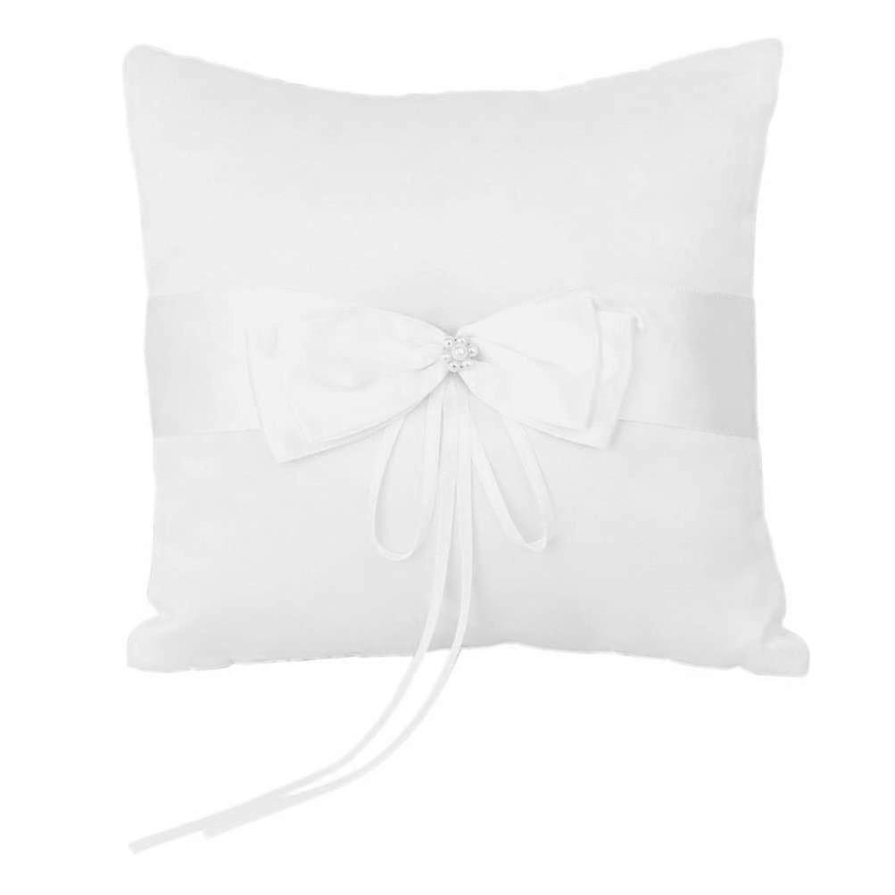 Ring Bearer Cushion Floral Design with Satin Double Bow, Faux Pearl Accents, Ribbon Detail, 8x8 Inches