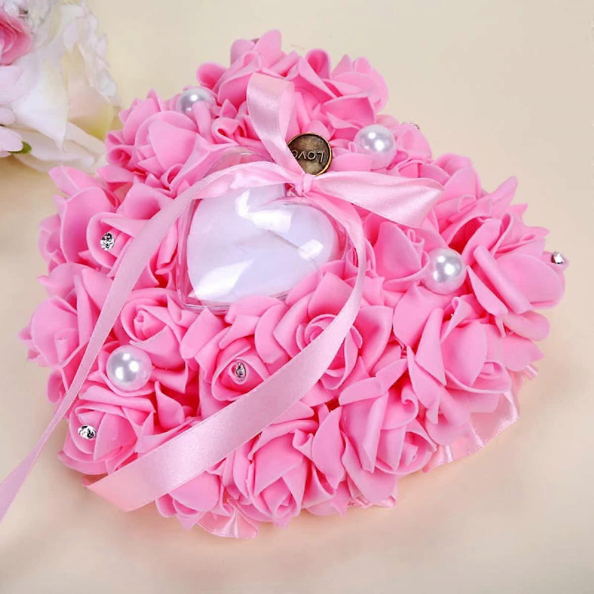 Heart Shape Rose Foam Wedding Ring Box Case Cushion Holder, Elegant Gift Decor for Engagement or Bridal Ceremony