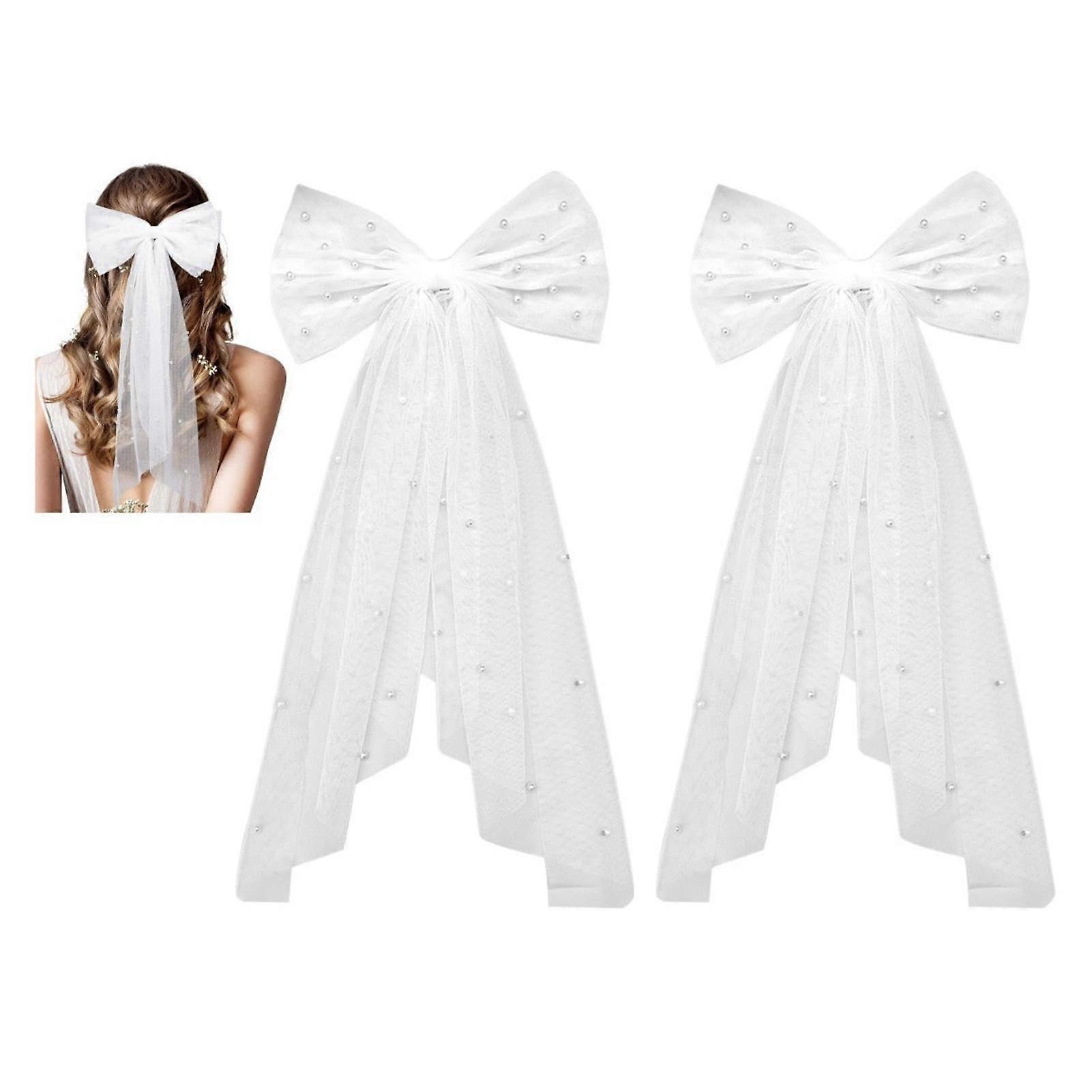 Mesh White Hair Bow Clip | 1/2 Piece Tulle Bridal Hair Accessories with Beads | Elegant Wedding Hair Pin for Bridesmaids