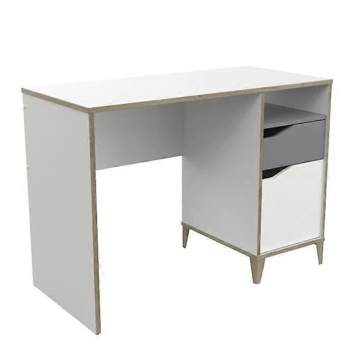The GENIUS desk combines elegance and functionality with its dimensions of 106.6 x 50 x 76.4 cm. Its particle board structure and white and gray melamine finish provide modernity and durability. With a practical drawer and a niche for storage, this desk is ideal for an organized workspace.