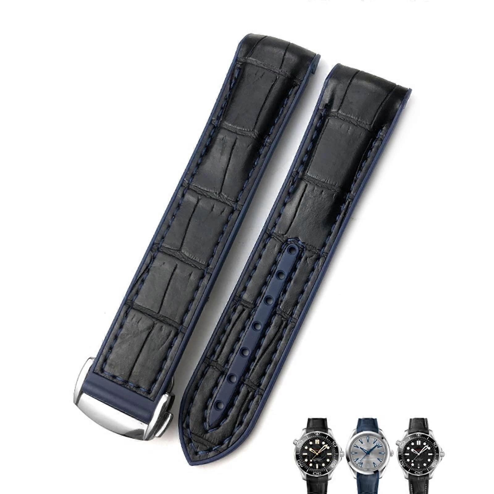 Watch Strap Cowhide Leather 20mm 22mm For Omega Seamaster Planet Ocean 600 GMT Orange With Blue Line Silver Buckle