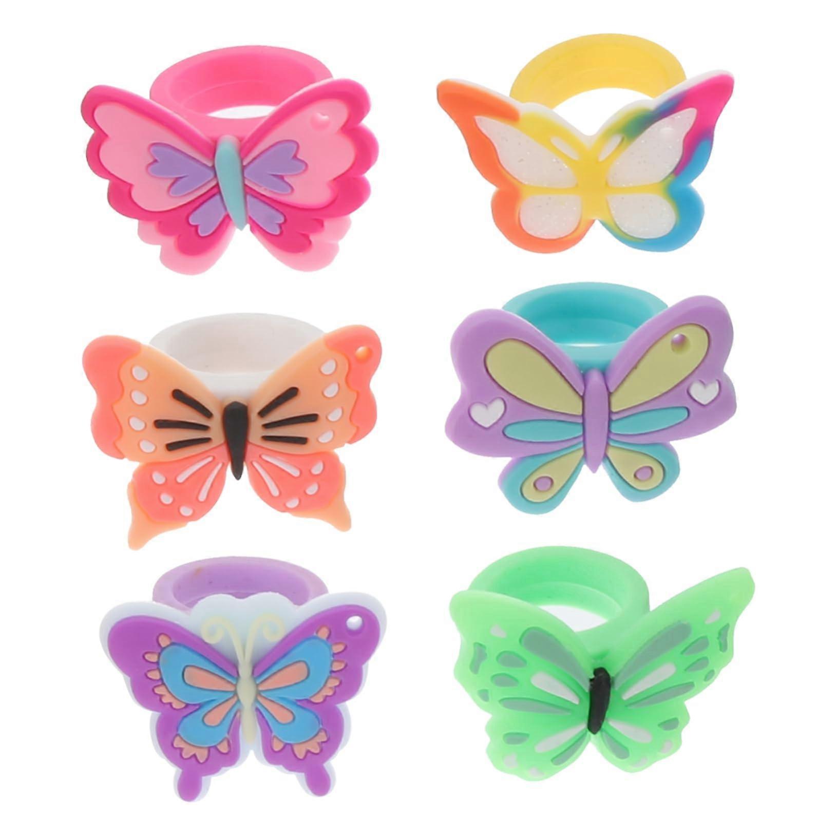12 Pieces Butterfly Rings Creative Plastic Toys for Birthday Party Favors and Celebration Giveaways for Kids