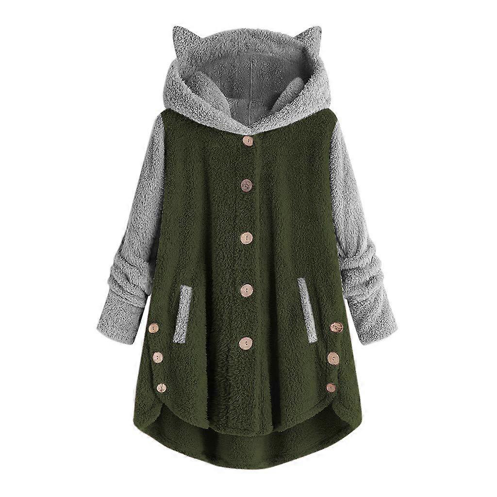 Plush Jacket Women's Oversize Hoodie Warm Lined Fleece Coat Casual Teddy Jacket Fluffy Kawaii 3XL Green with Pockets
