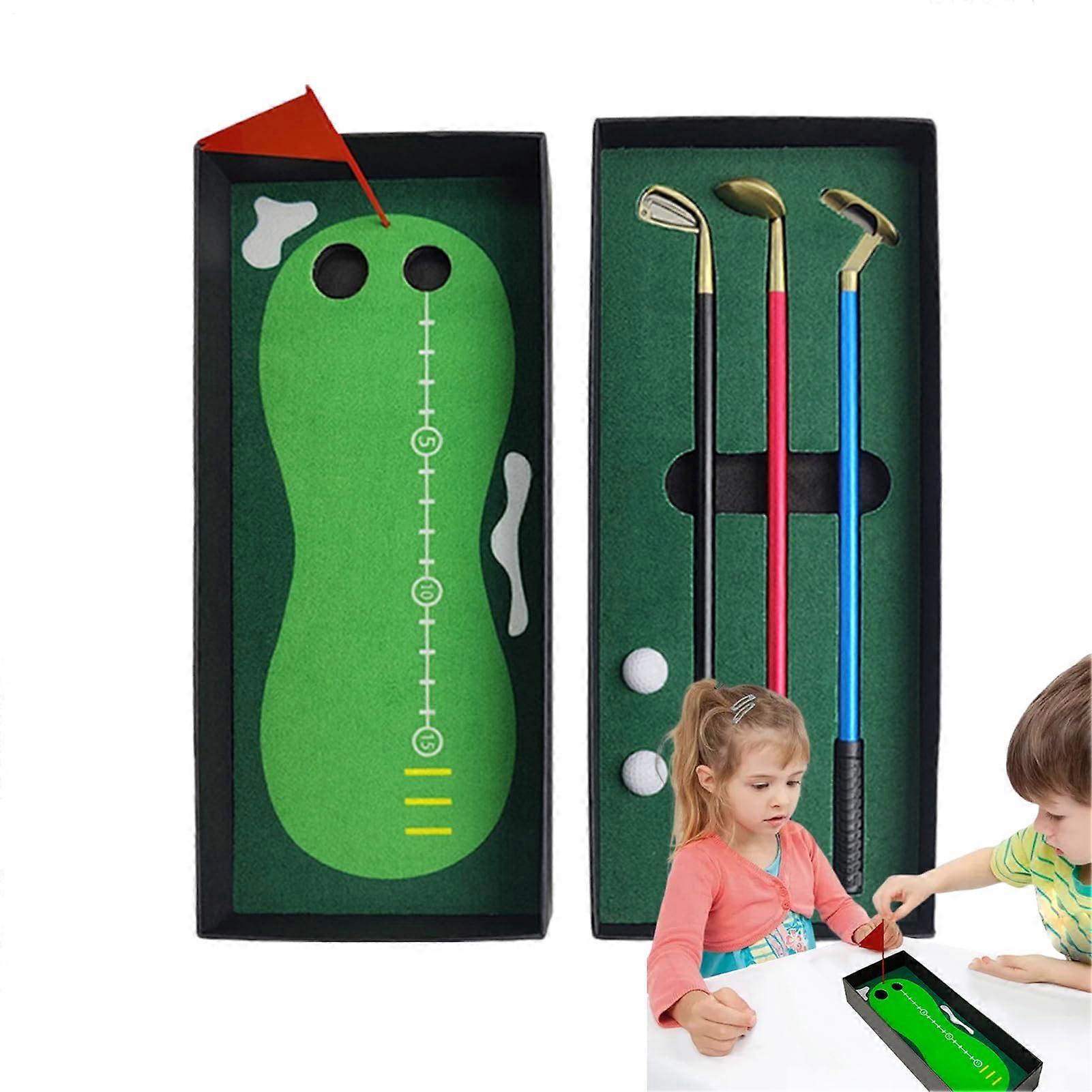 Golf Ballpoint Pens Desktop Golf Set With Portable Putting Green And Flag, 3 Club Pens And 2 Balls, For Dad Black