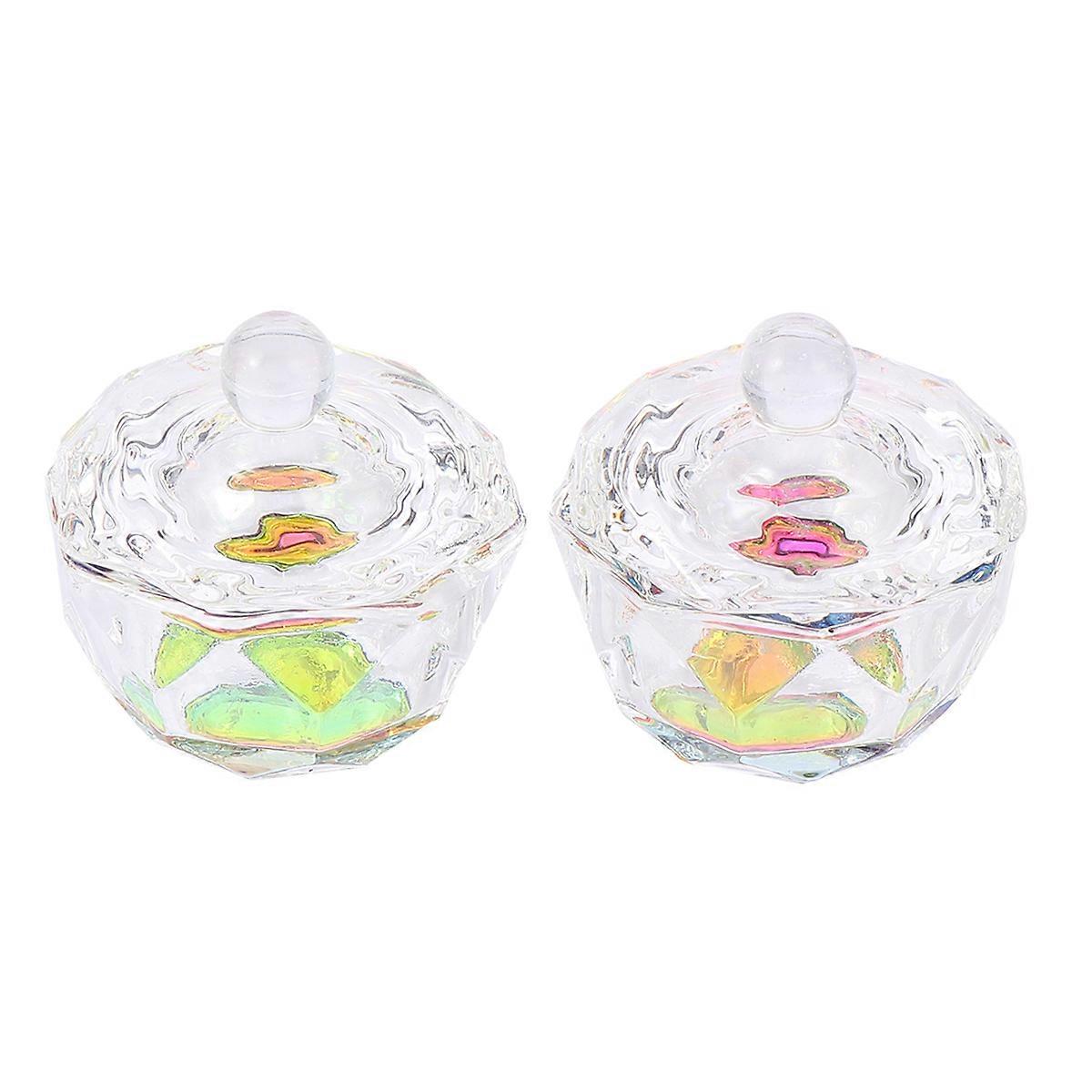 Nail Dipping Pots With Lids Glass Dish Mix Acrylic Nail Liquid Octagonal 2Pcs