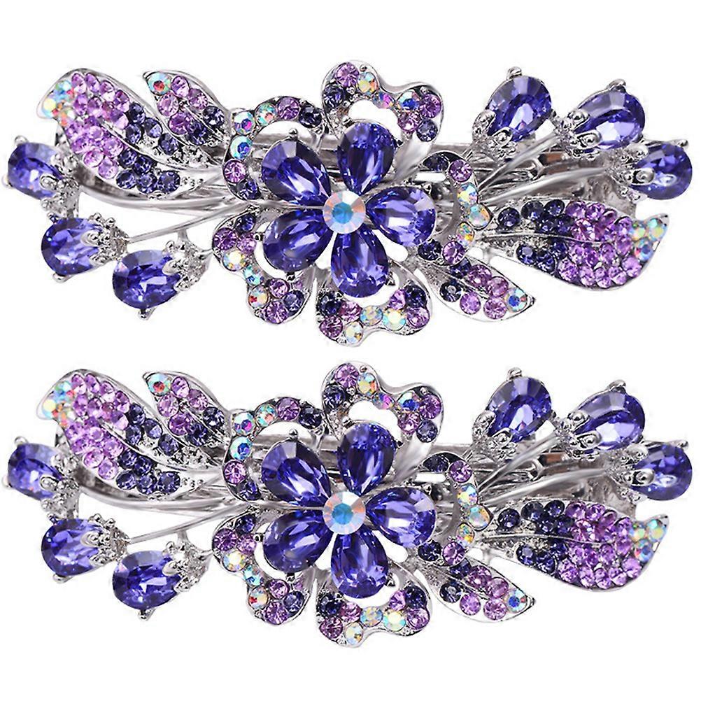 Rhinestones Hair Clips Purple for Women 2Pcs Ponytail Holders Stylish