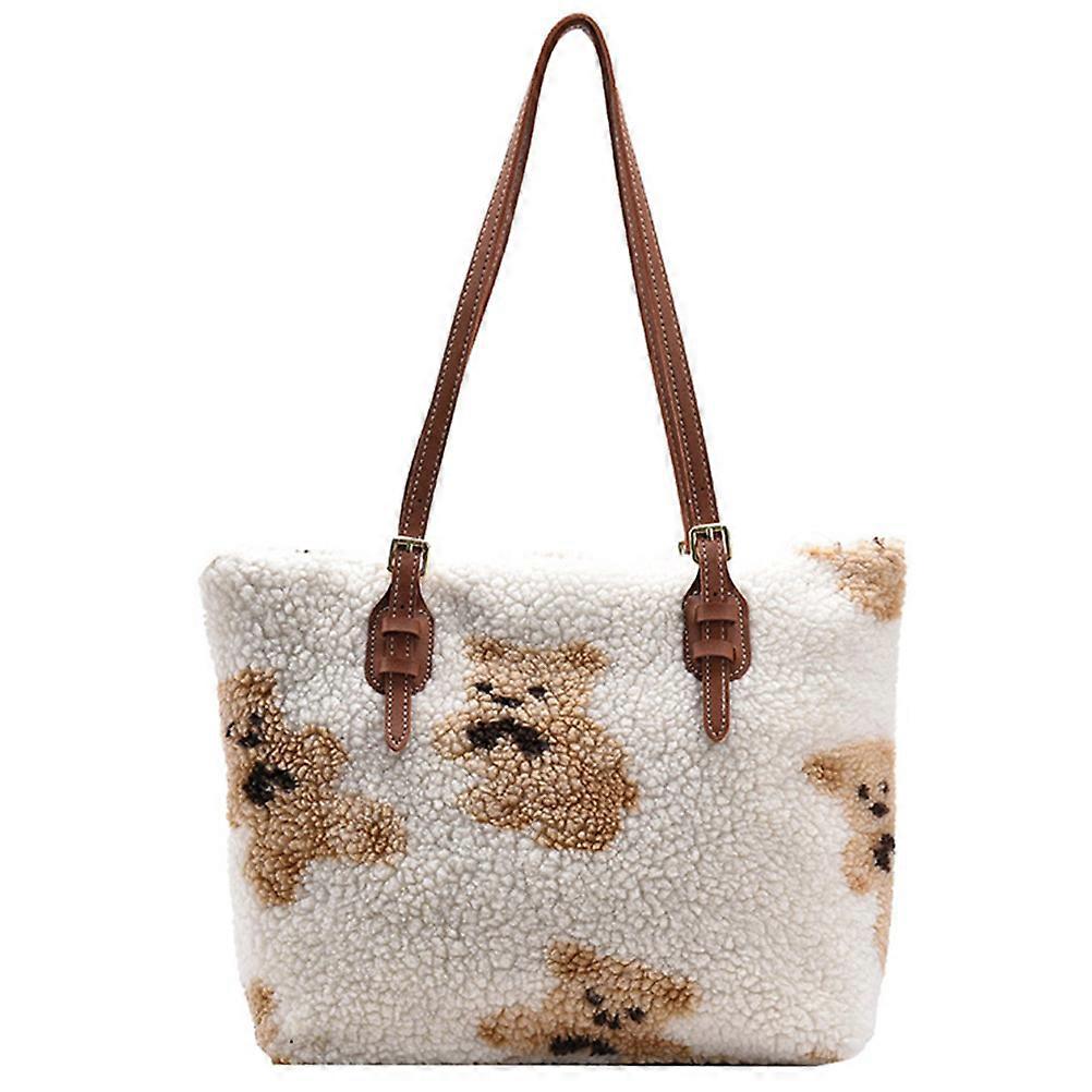 Large Capacity Plush Shoulder Bag Tote Bag for Women 1Pcs Stylish White