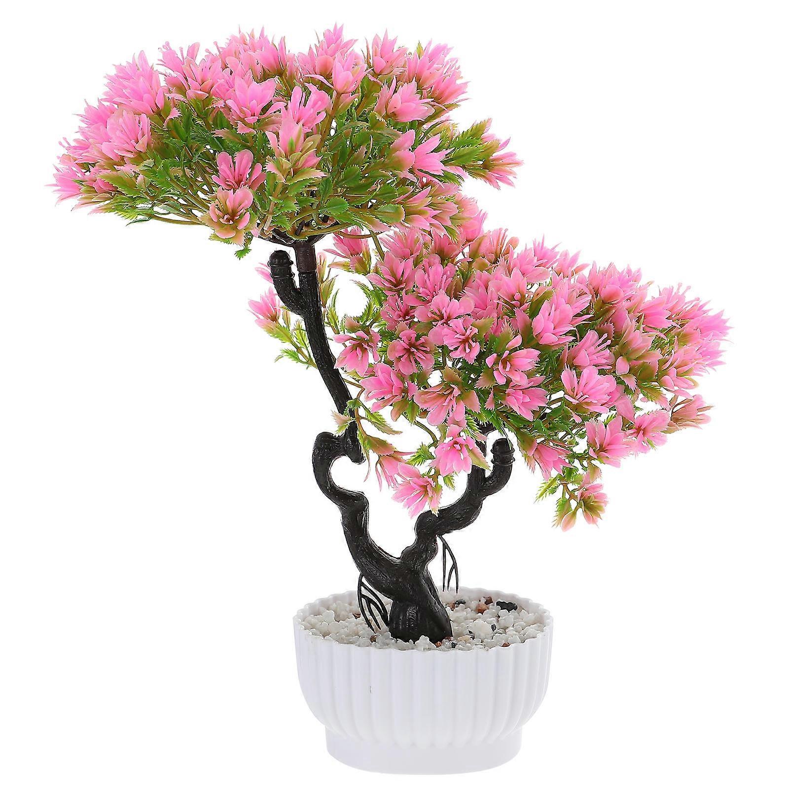 Faux Bonsai Pink Artificial Plant Plastic with Natural-Looking Greenery for Decoration