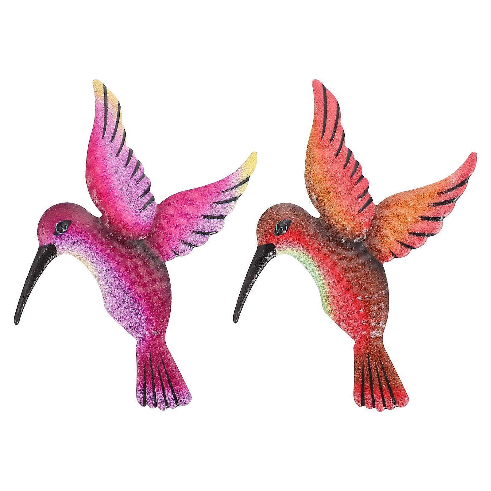 Birds Metal Sculpture Iron Hummingbird Home Pendant For Yard 9.5x10x0.5cm Orange 2Pcs