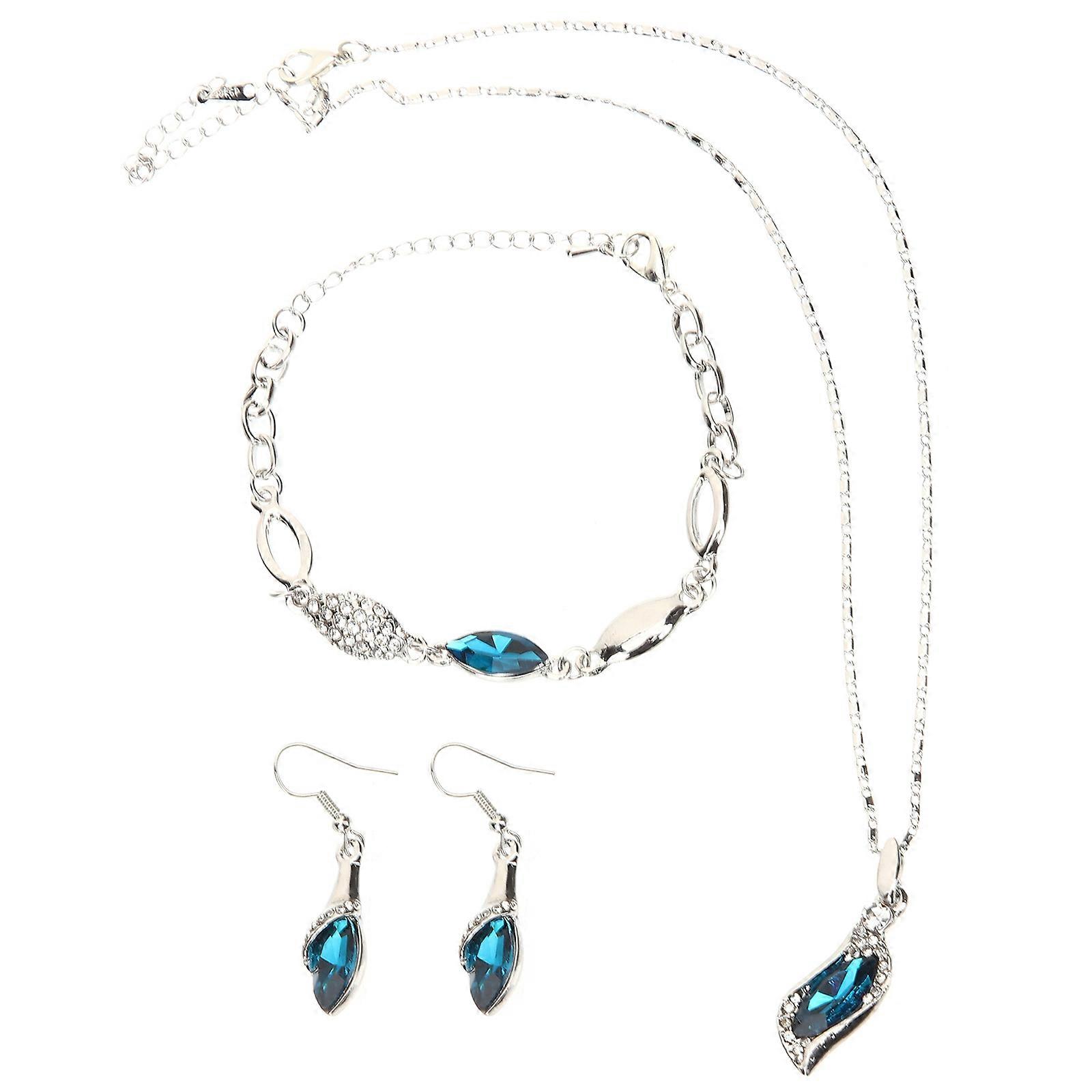Crystal Jewelry Set for Women Earrings Necklace Bracelet 1Set Fashion Silver Alloy