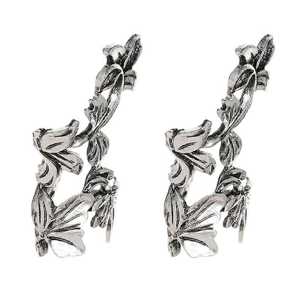 Ear Cuff Leaf Shape Clip on Earrings for Birthday Parties Silver Alloy Decorative 2Pcs